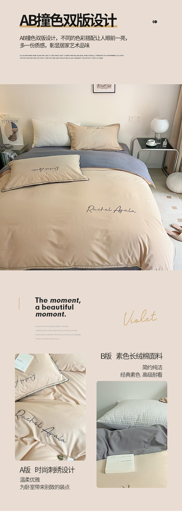 (总)艾莱家纺 2025新款A类50S云柔棉加密柔顺磨毛四件套-依人梦,依人梦-巴黎粉,依人梦-高级灰,依人梦-浪漫紫,依人梦-浅香槟