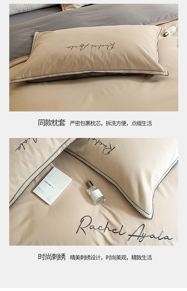 艾莱 2022新款A类新疆长绒棉加厚磨毛四件套-实拍图 瑞秋-奶咖+蓝莓灰