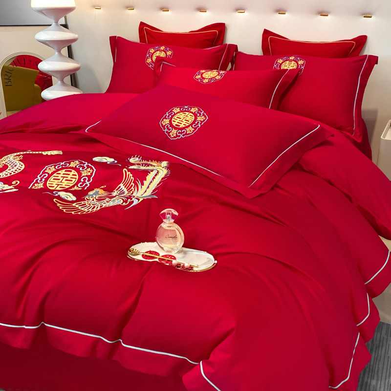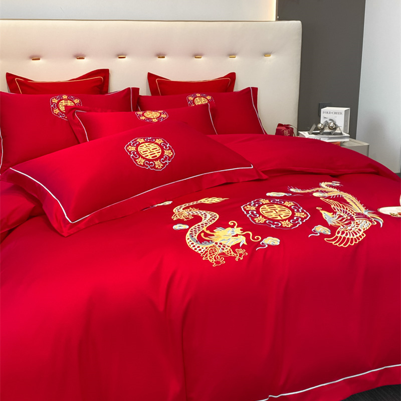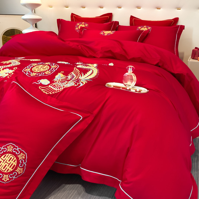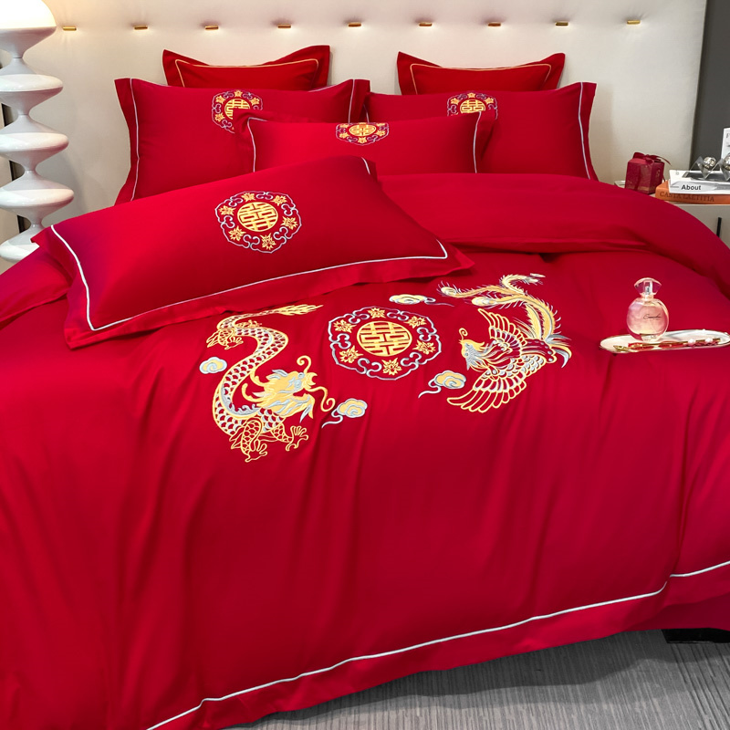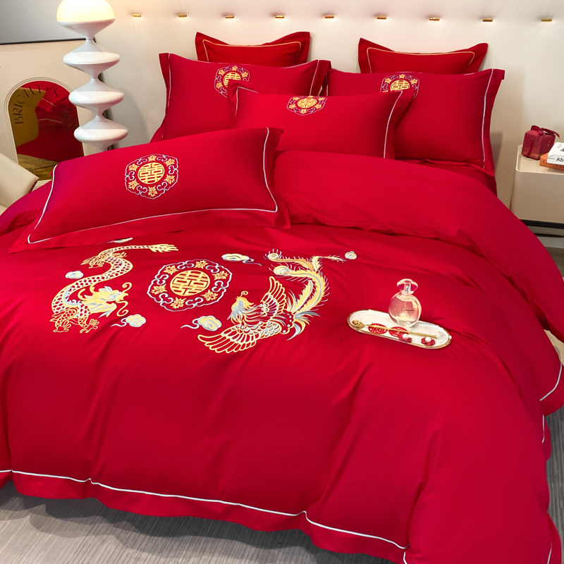 2024新款婚庆被大红喜被加厚磨毛婚庆四件套 龙飞凤舞