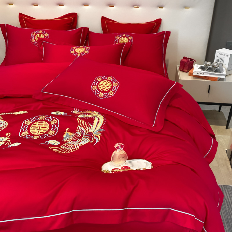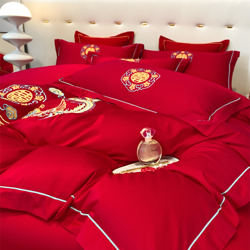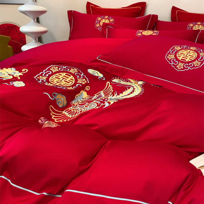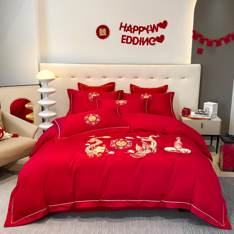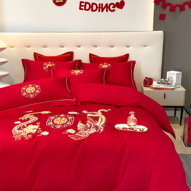 2024新款婚庆被大红喜被加厚磨毛婚庆四件套 龙飞凤舞