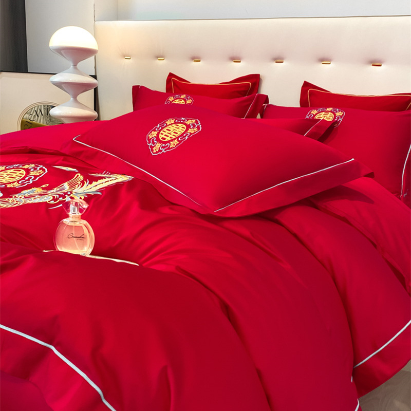 (总)金麦家纺 2025新款亲肤提花面料刺绣婚庆四件套-婚庆系列,热情玫瑰,喜悦,永恒