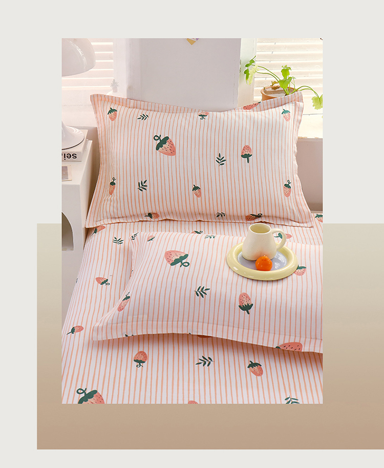 (总)拾物记 2023新款喷气全棉卡通小清新系列单床单,欢乐萌熊,奶油兔-红