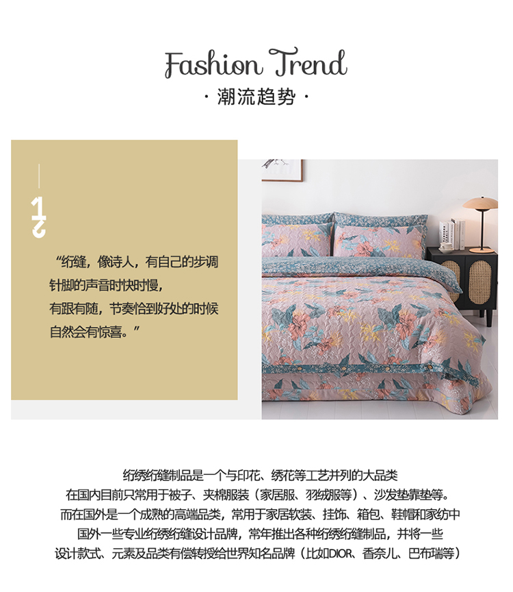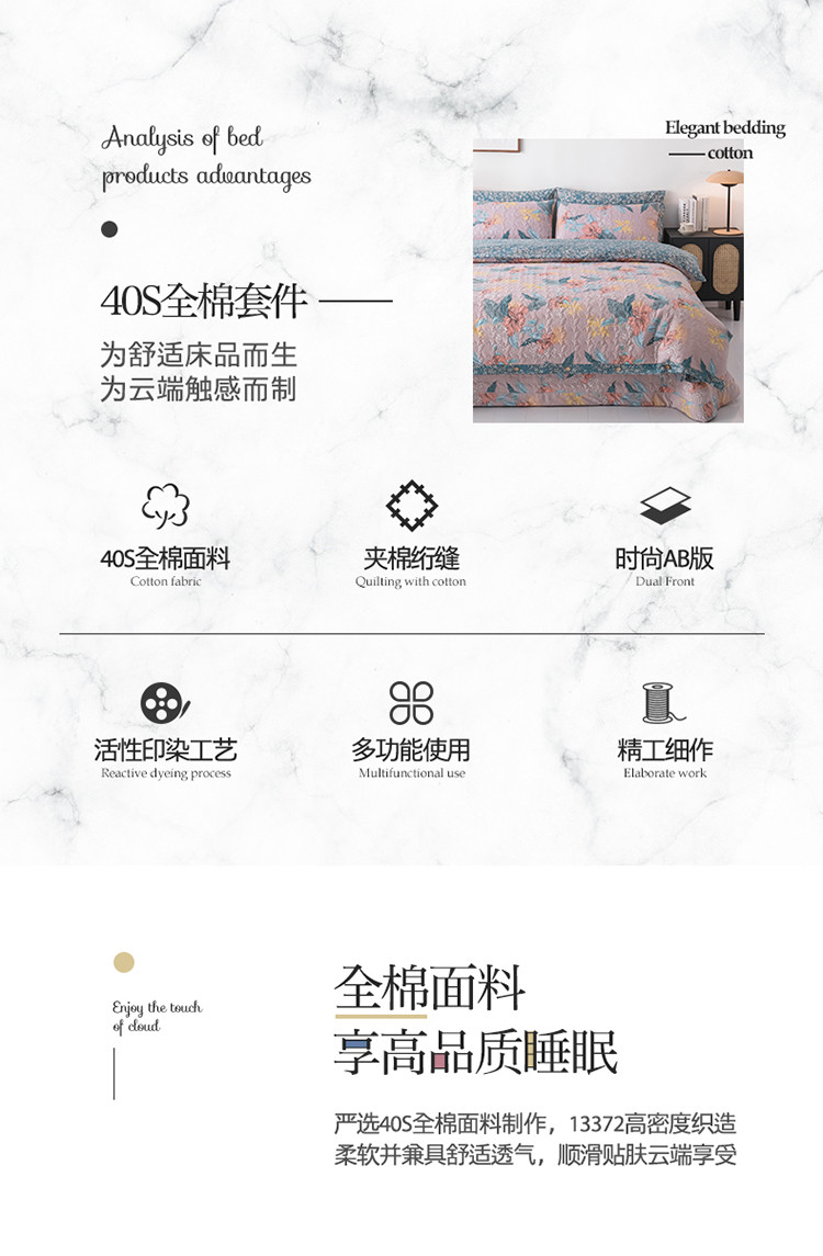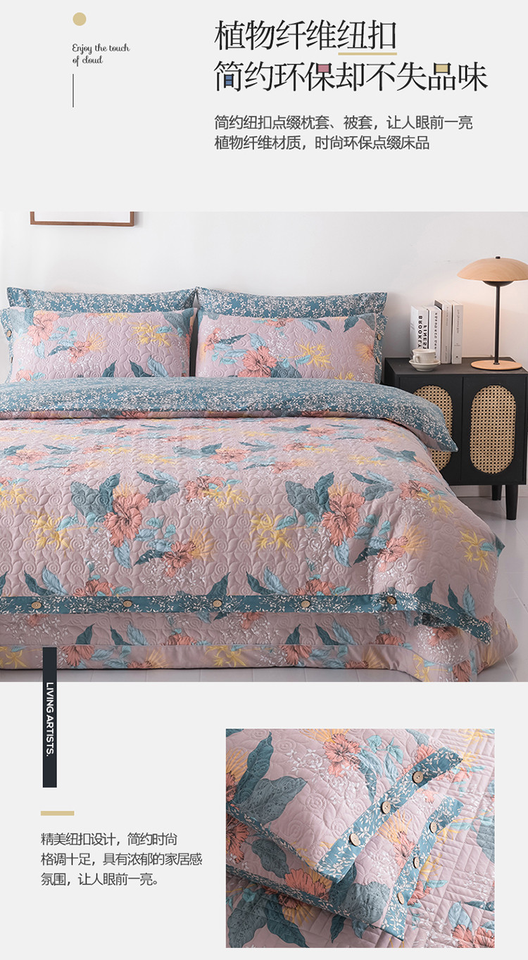 当前位置: 91家纺网 > 商品网购 > 床品套件 > 四件套 > 全棉普通四件套 > 优乐家纺 2023新款全棉印花绗绣四件套 如沐春风