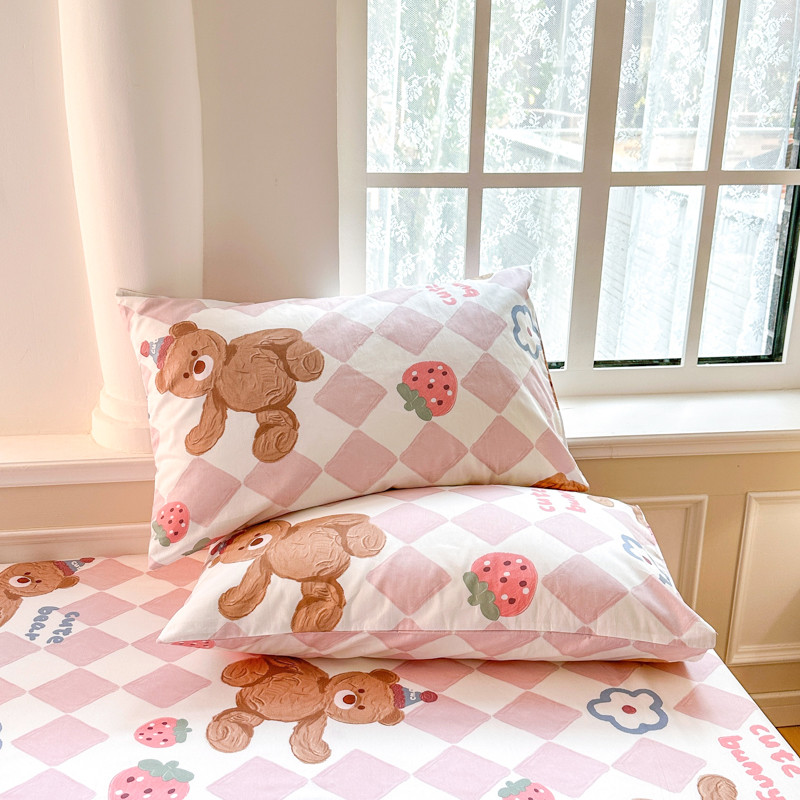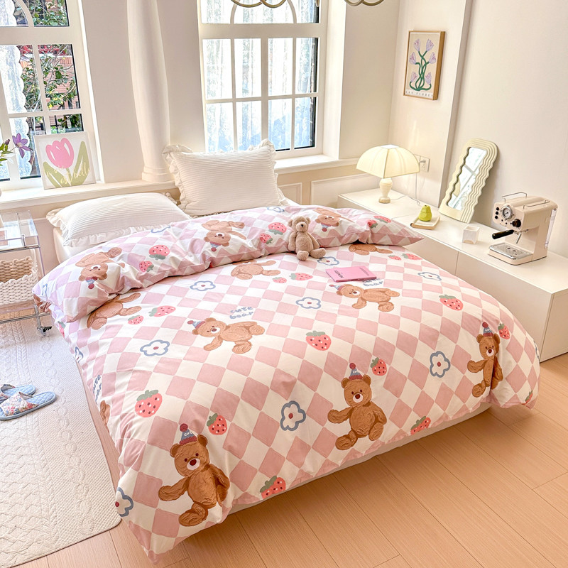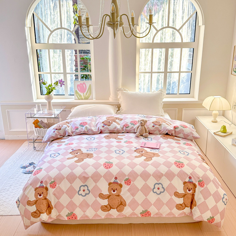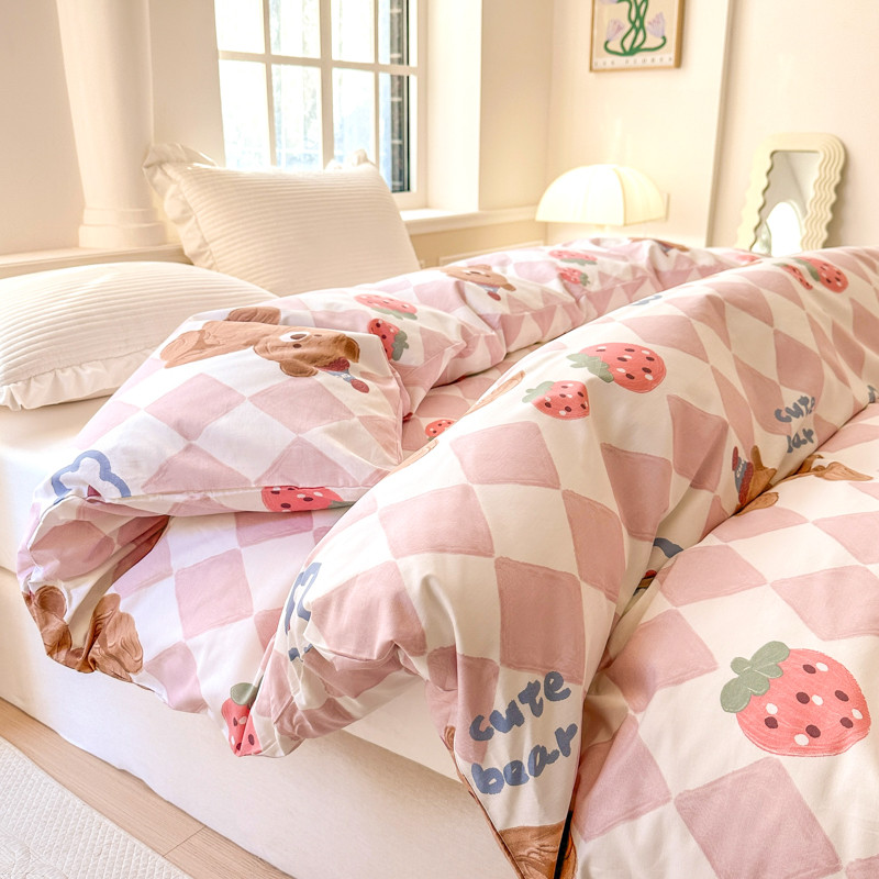 优彩 2023新款全棉13372系列全A版床单被套四件套 草莓小熊