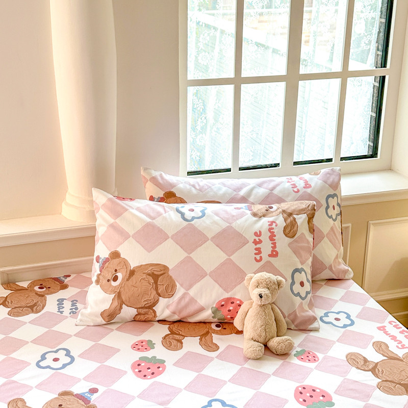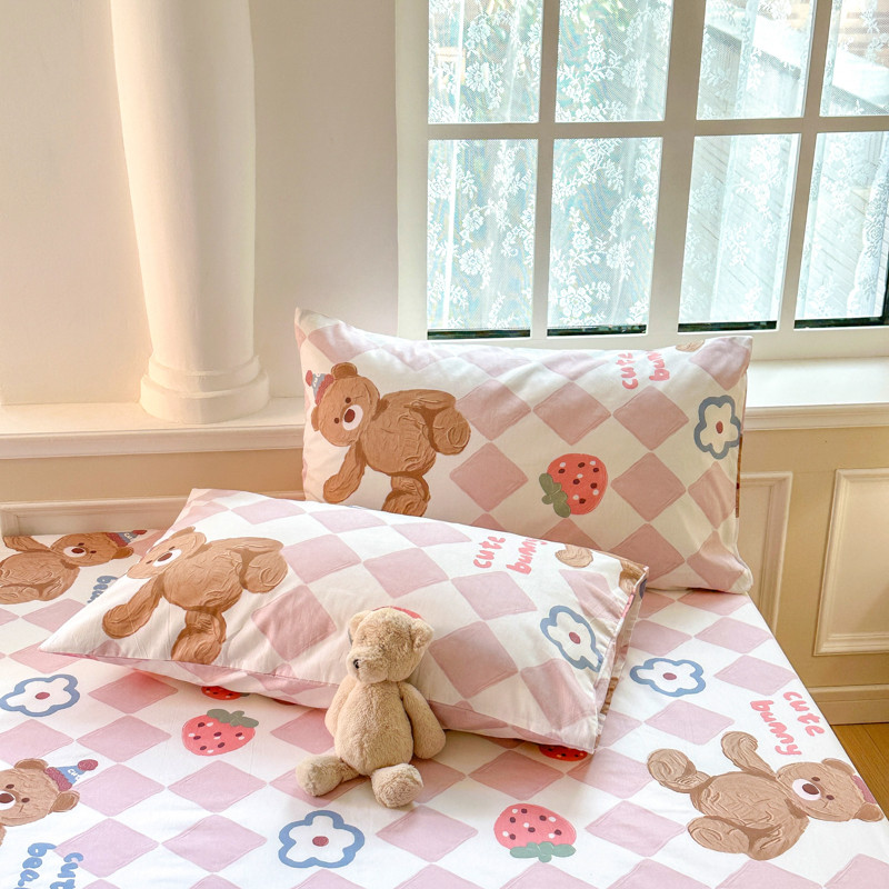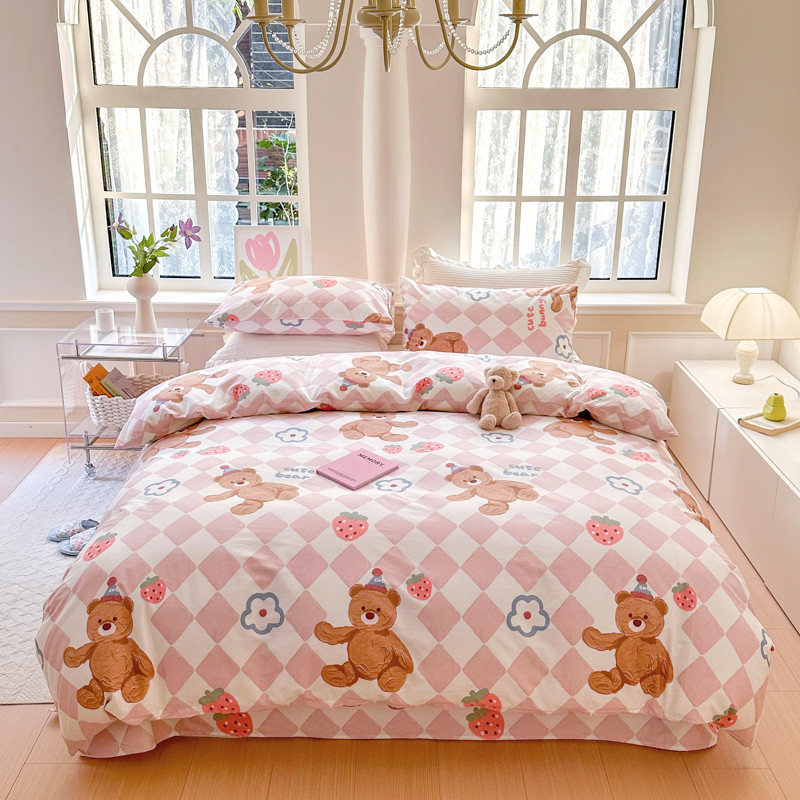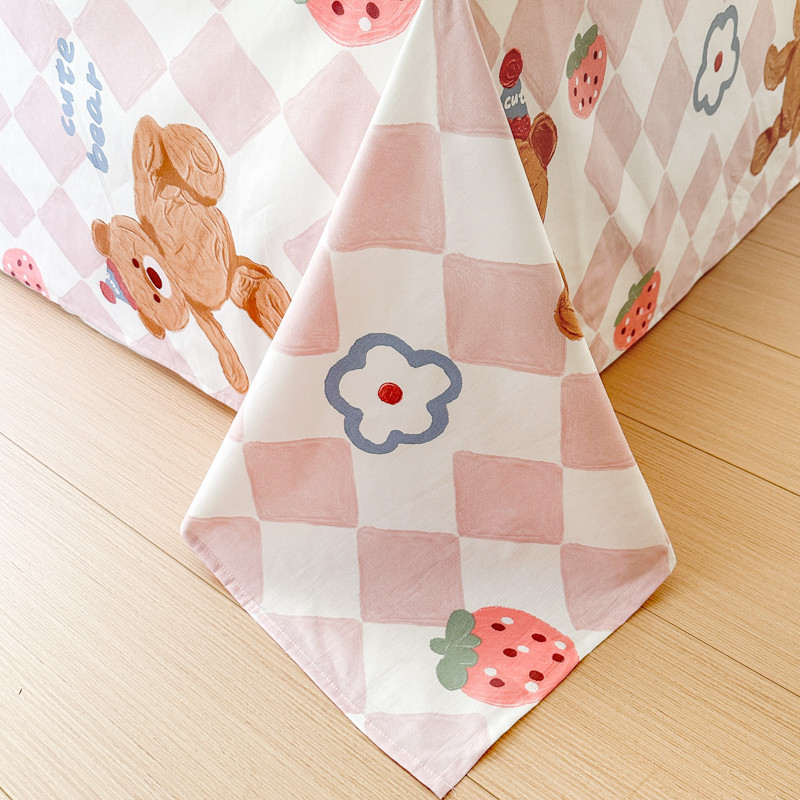 商品名称:优彩 2023新款全棉13372系列全A版床单被套四件套 草莓小熊