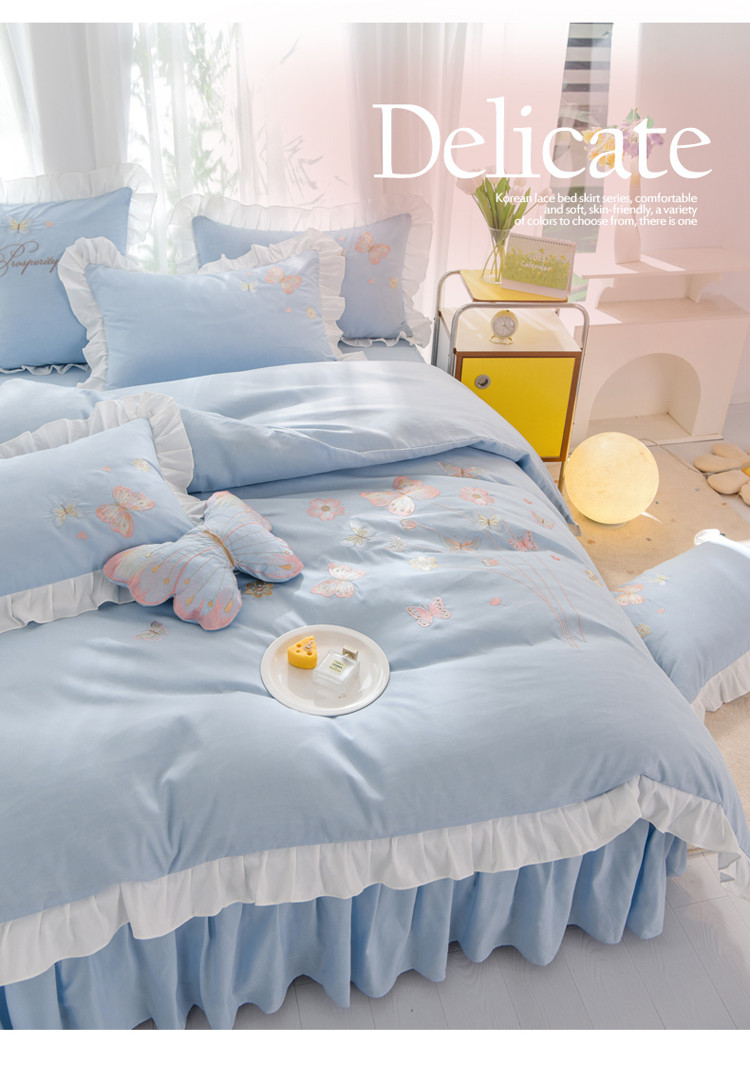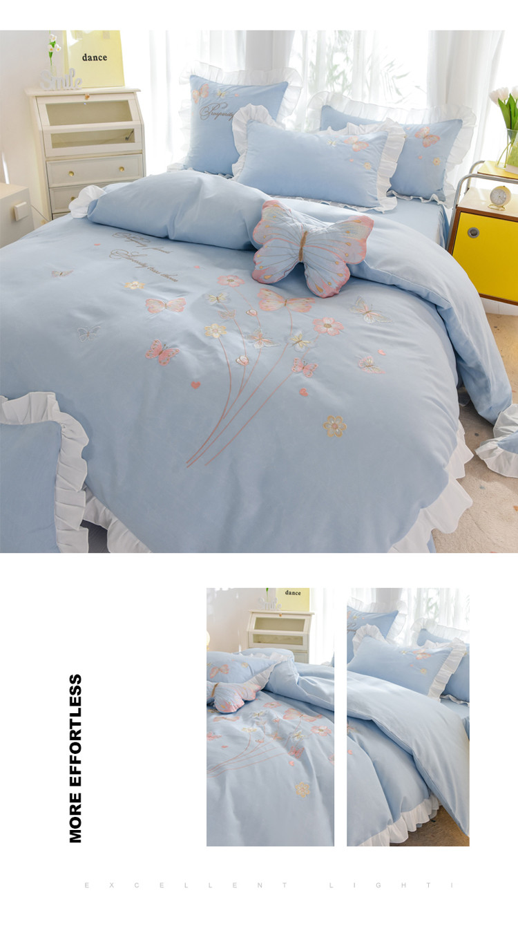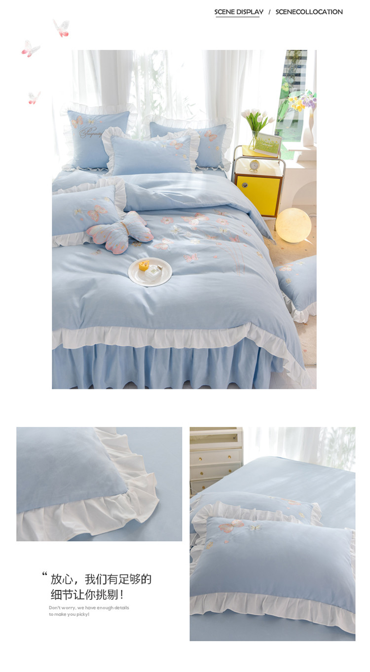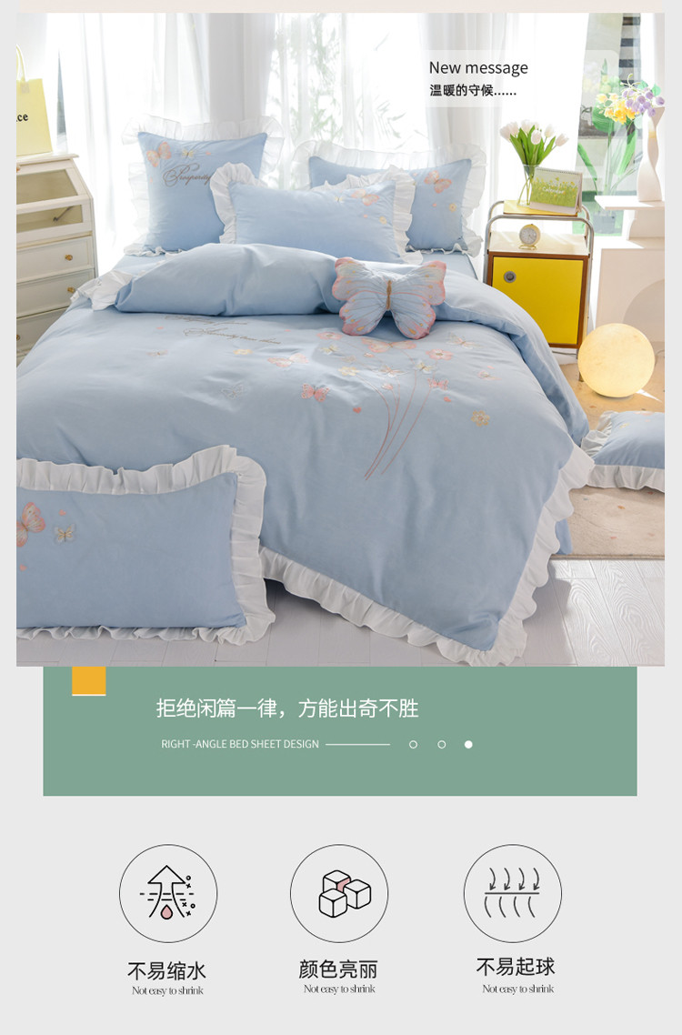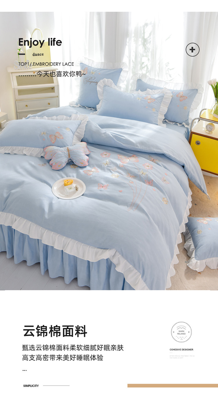 当前位置: 91家纺网 > 商品网购 > 床品套件 > 四件套 > 化纤普通四件套 > 绒世界 2024新款秋冬保暖云锦棉刺绣花边春卉系列四件套 春卉-慕蓝