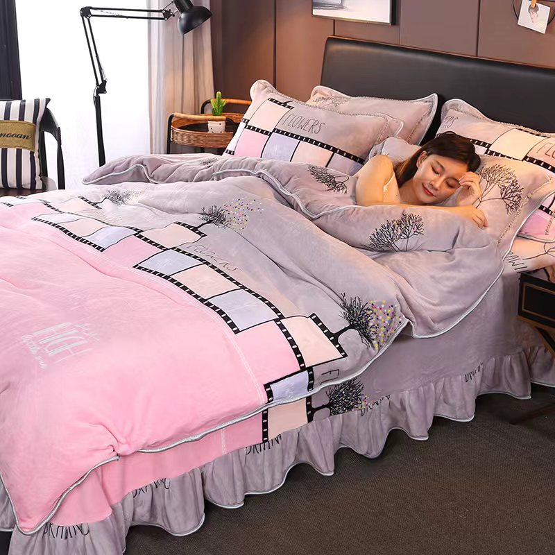 商品名称:爱上家居 2023新款加厚牛奶金貂绒四件套 粉红日记