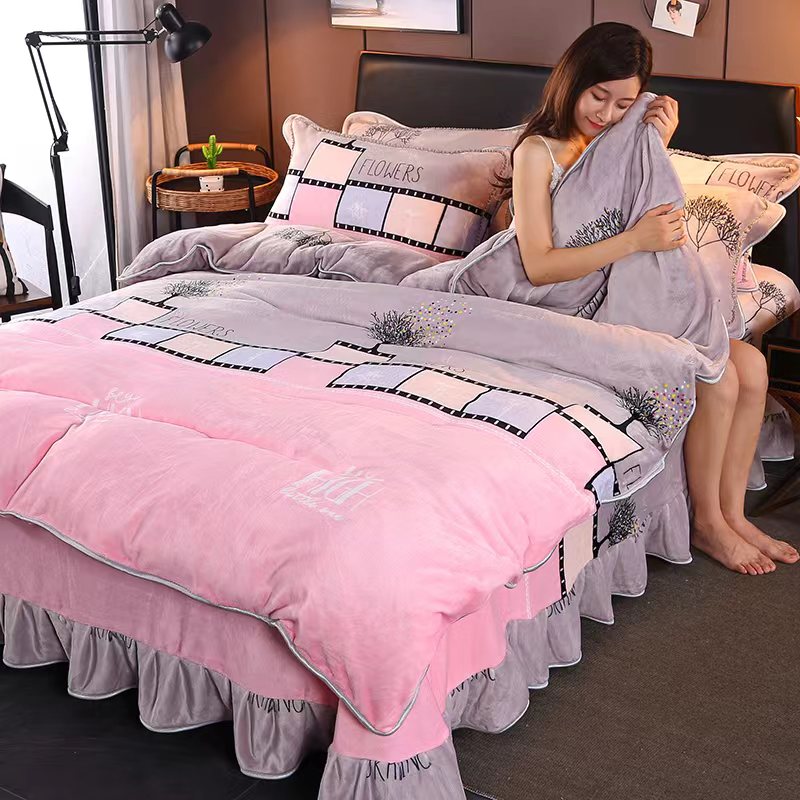 爱上家居 2023新款加厚牛奶金貂绒四件套 粉红日记
