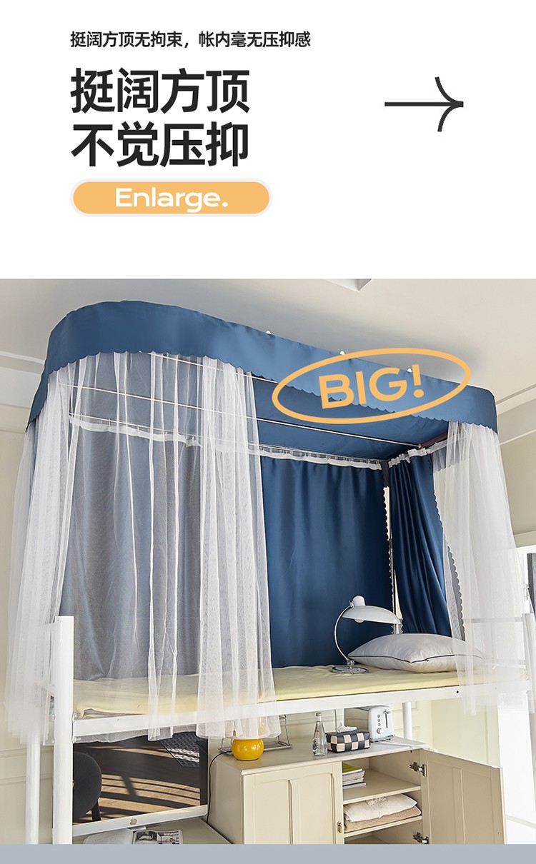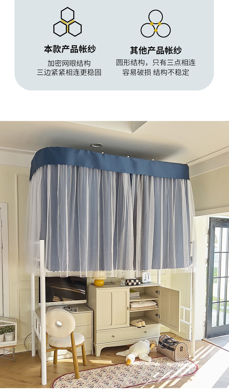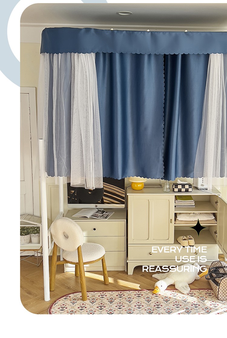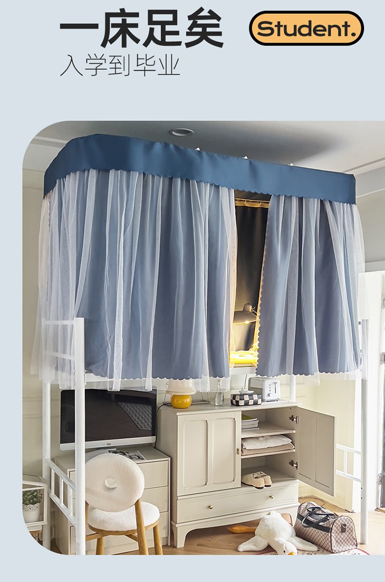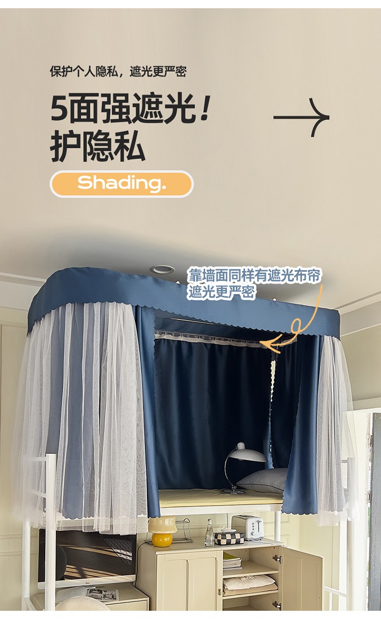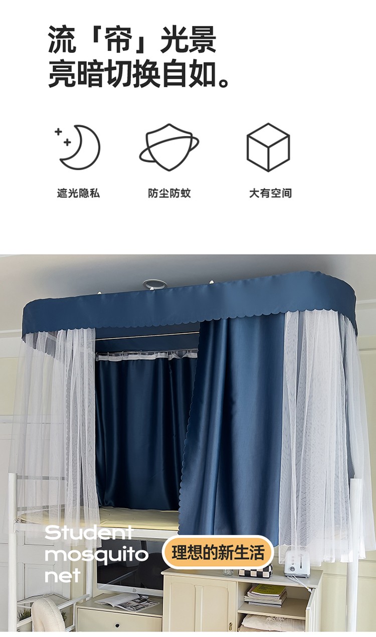 商品名称:新太阳2025新款纯色U型轨道学生遮光蚊帐-终版 U型轨道遮光蓝色