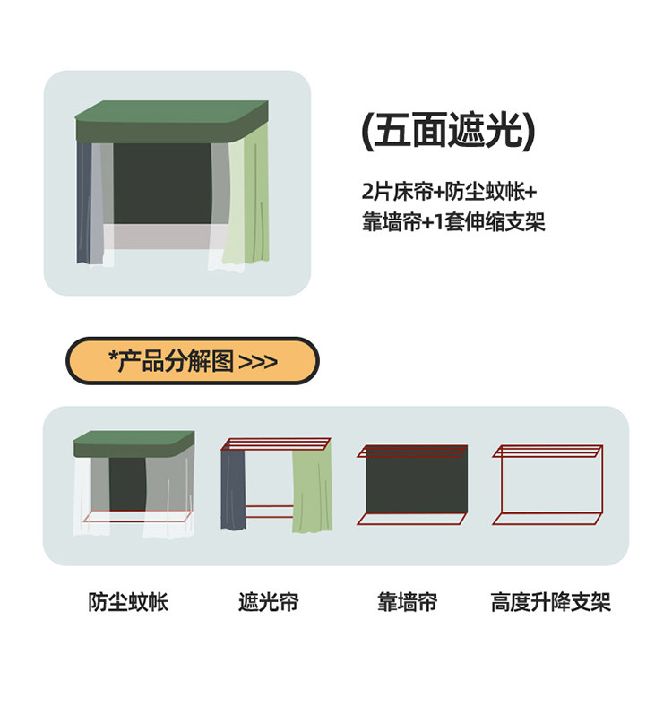 (总)新太阳蚊帐 2025新款学生上下铺高精密面料强遮光蚊帐(6面全包 有底款),高精密面料强遮光-粉,高精密面料强遮光-灰,高精密面料强遮光-蓝