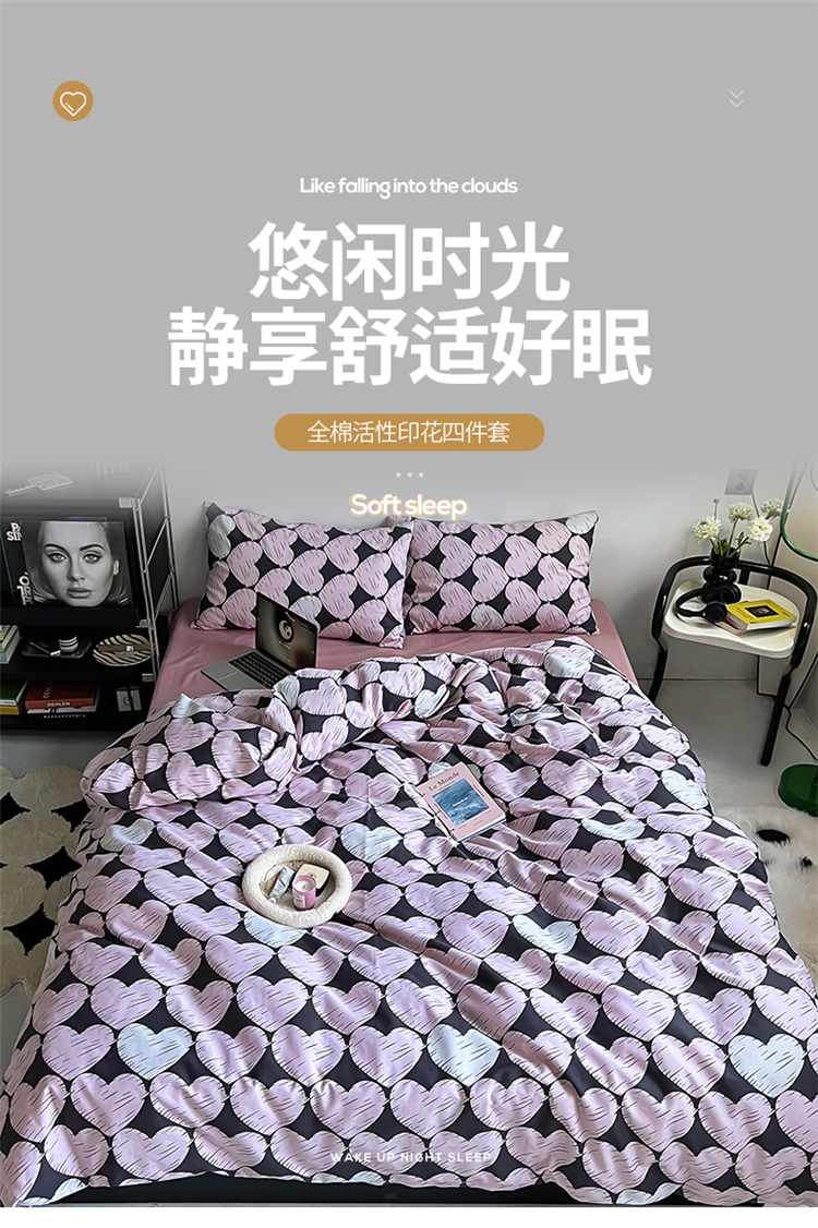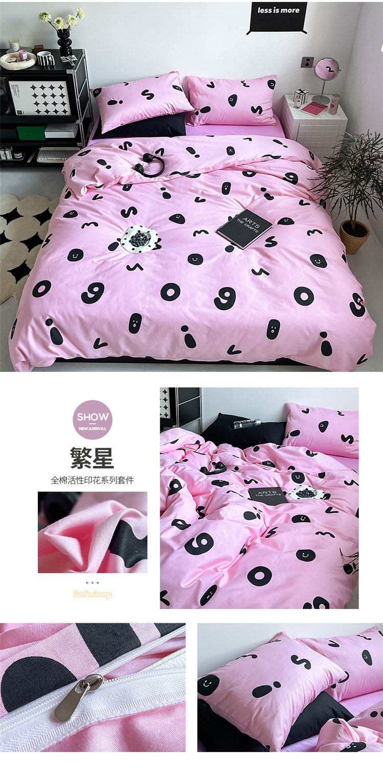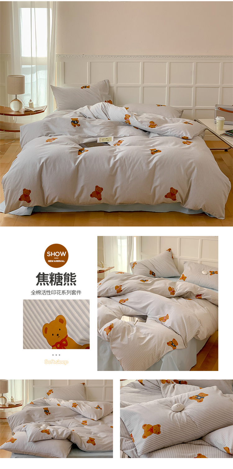(总)窝米2023新款13370全棉四件套卡通简约款