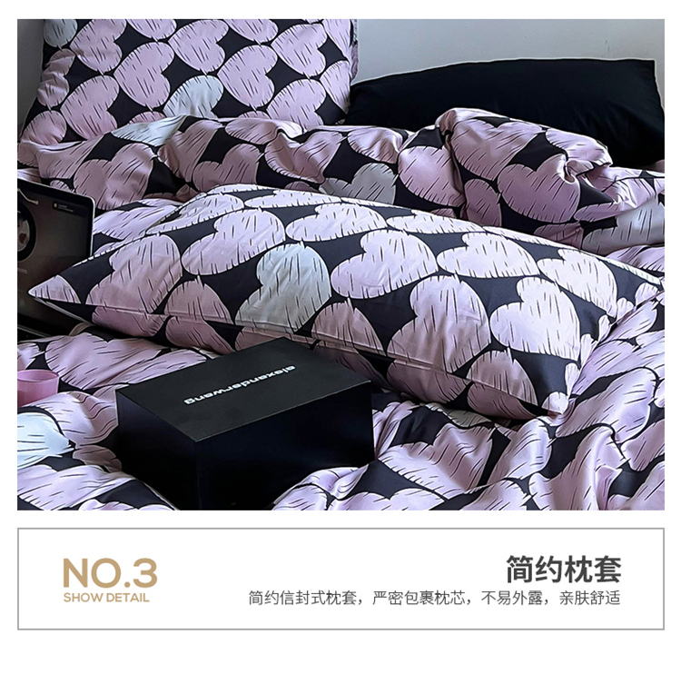 (总)窝米 2025新款数码印花100支长绒棉纯棉工艺花边款四件套-晚意,晚意
