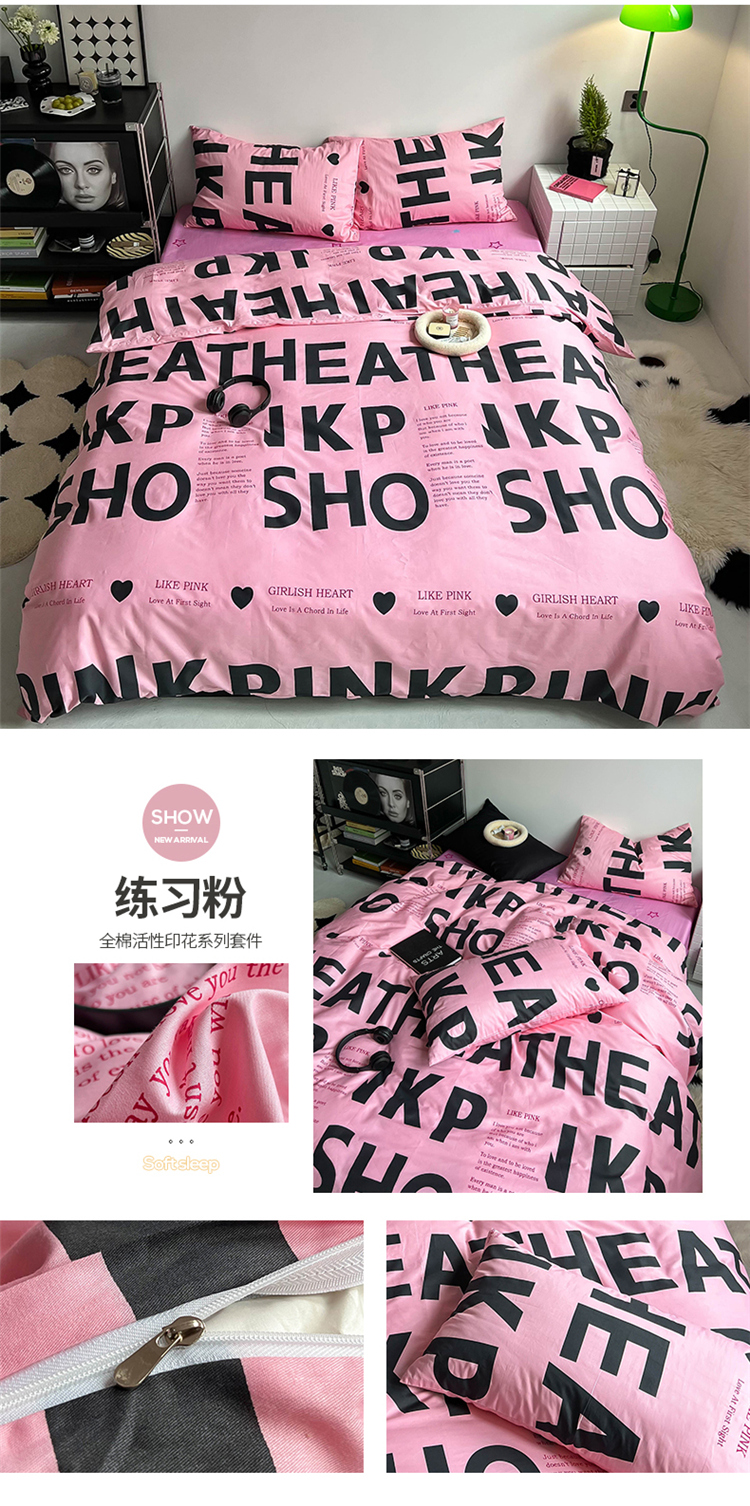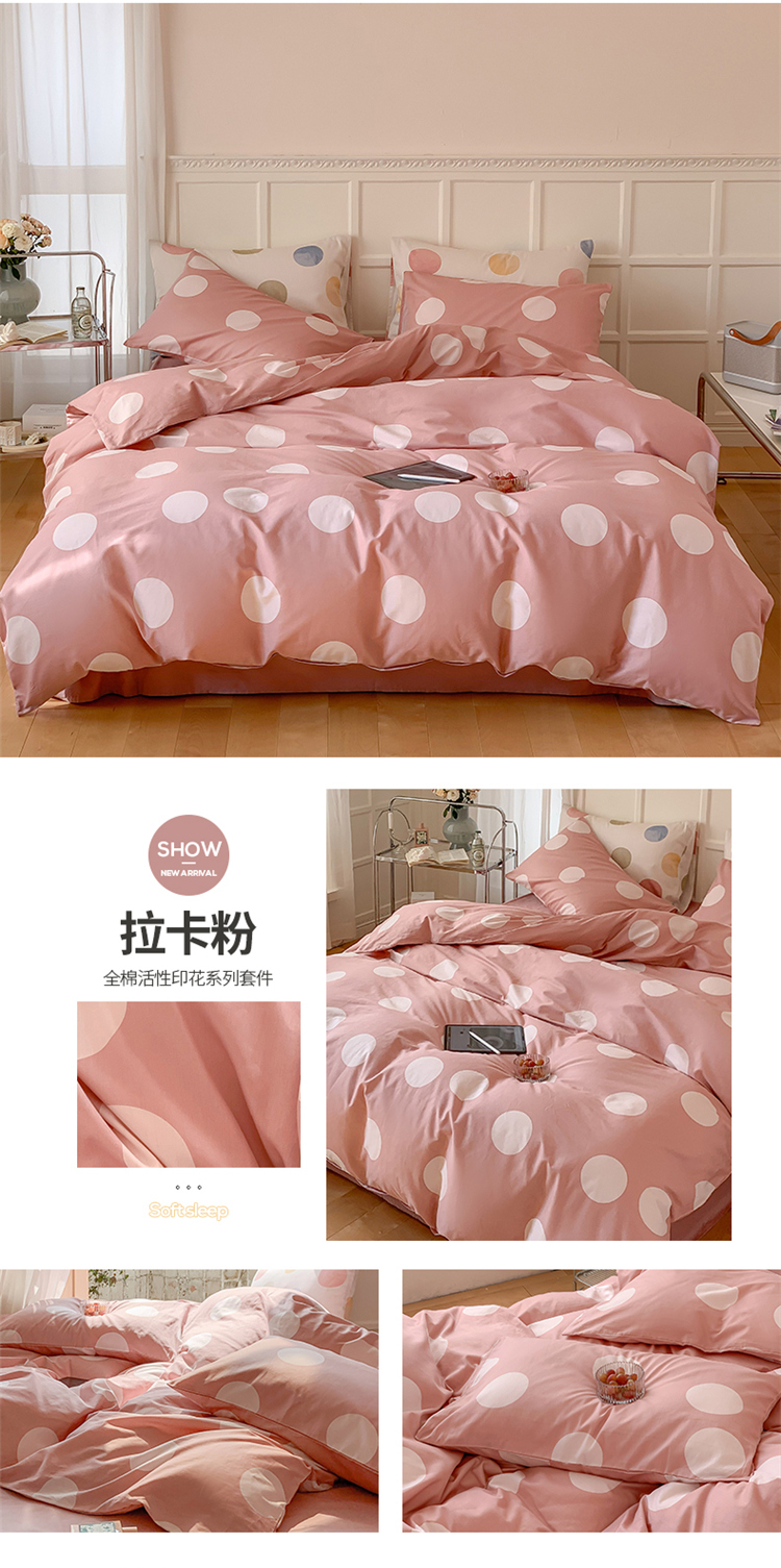 窝米 2020春夏新品全棉13372四件套小波西风系列草莓酱,草莓酱