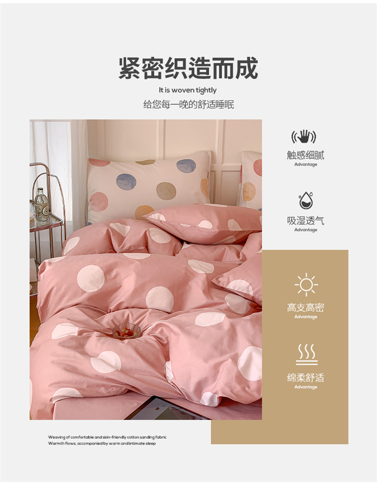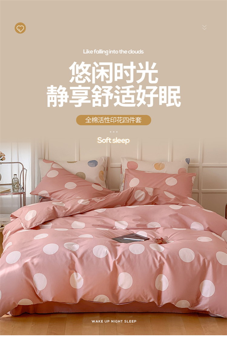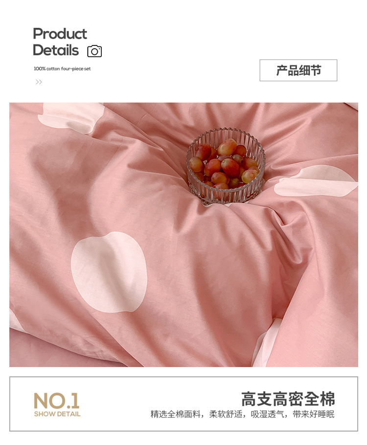 窝米 2020春夏新品全棉13372四件套小波西风系列草莓酱,草莓酱