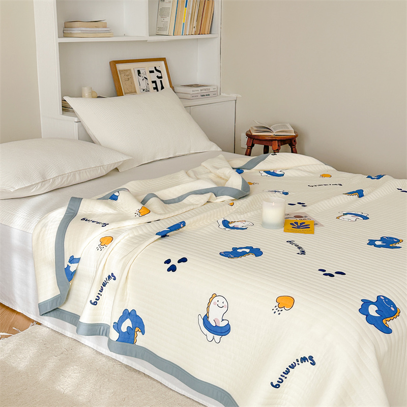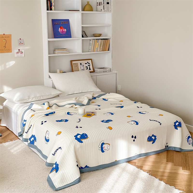 爱丽丝 A类针织莫代尔超柔空气凉感卡通夏被 萌萌小恐龙(蓝)
