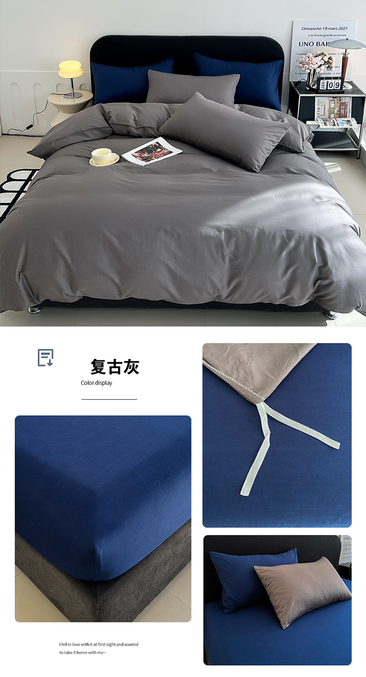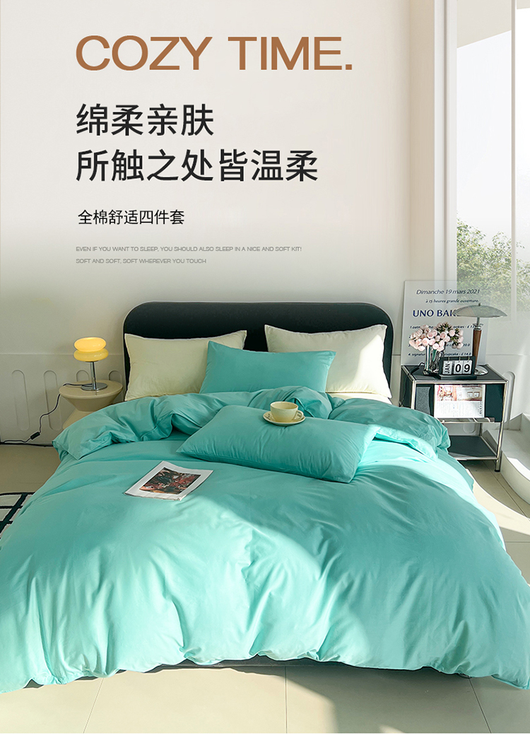 商品名称:(总)恩和 2024新款全棉13374全棉ins纯色拼色四件套