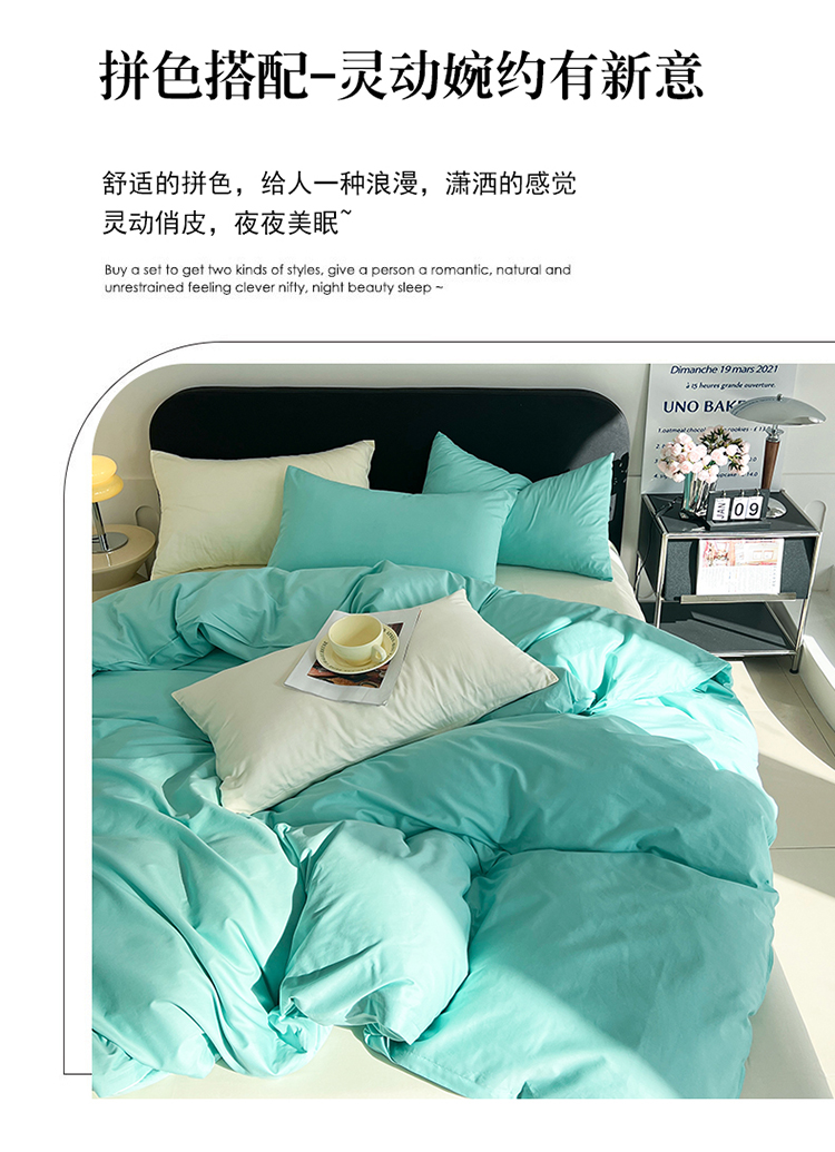 (总)恩和 2024新款全棉13374全棉ins纯色拼色四件套