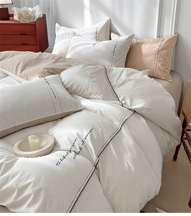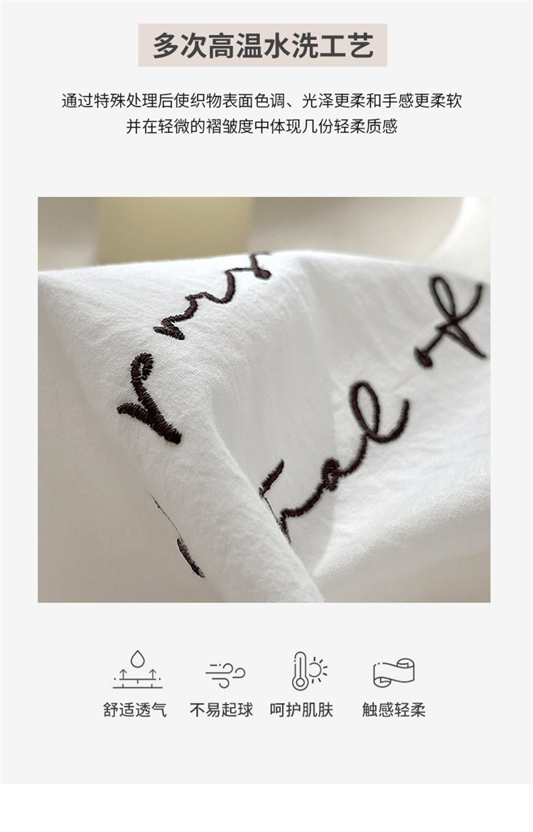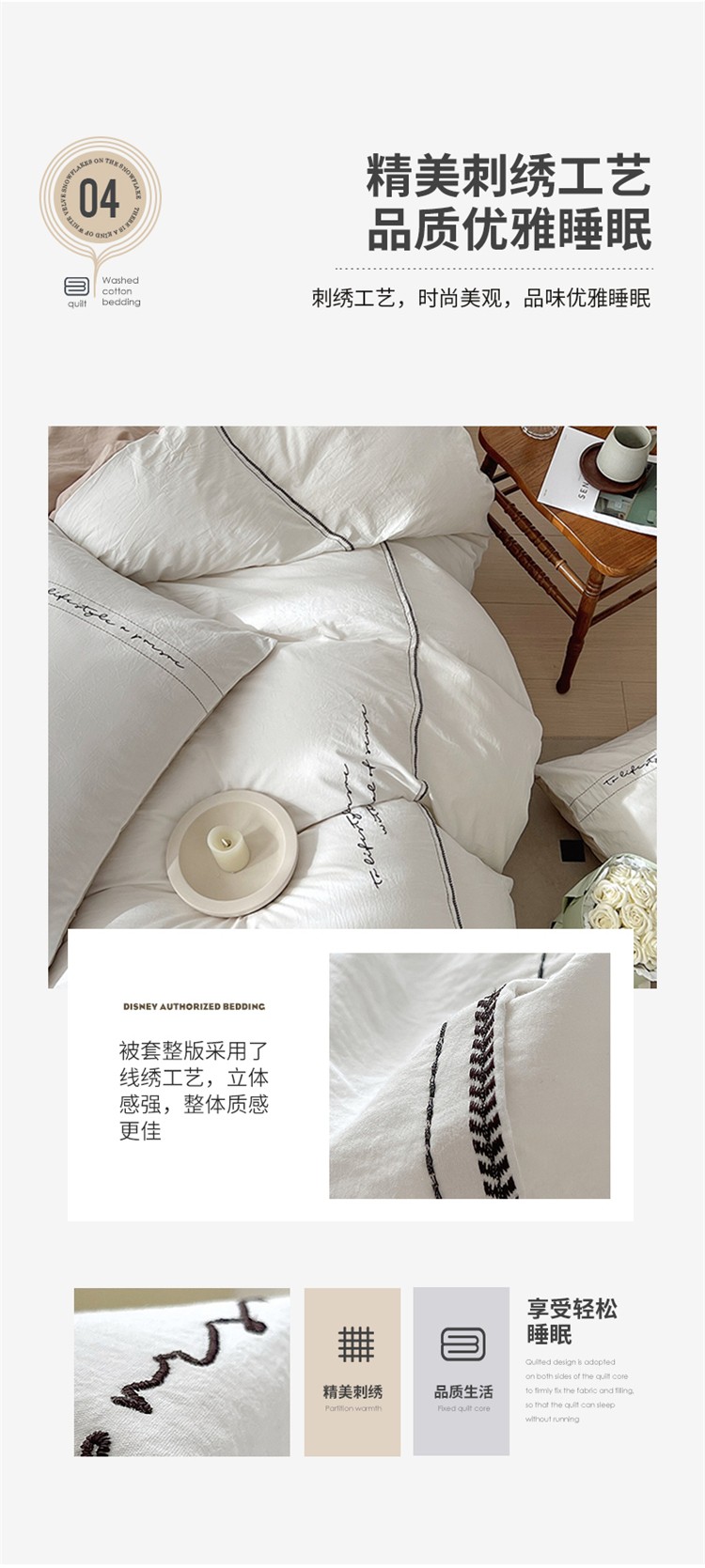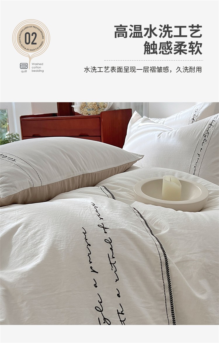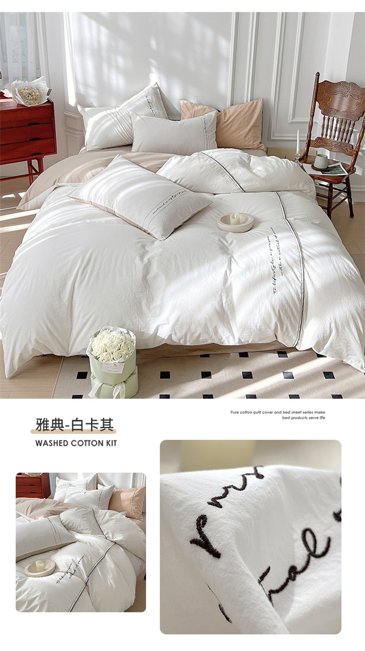 拼社 全棉水洗棉刺绣四件套纯棉床上用品 雅典-白卡其