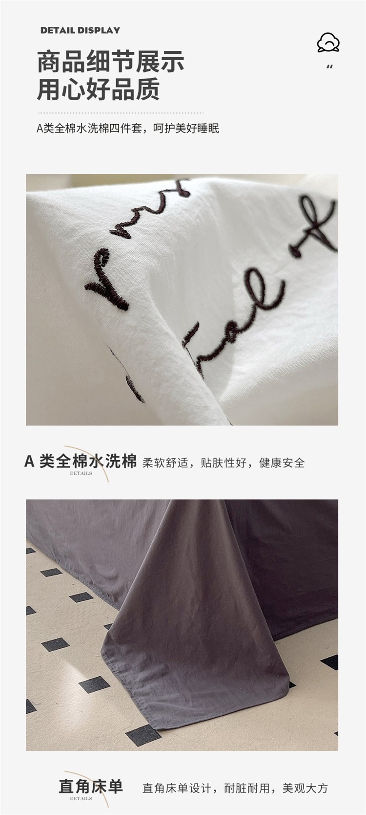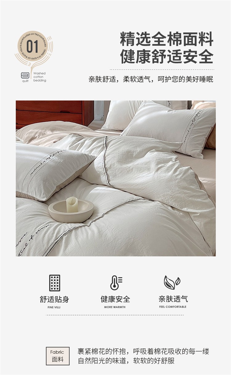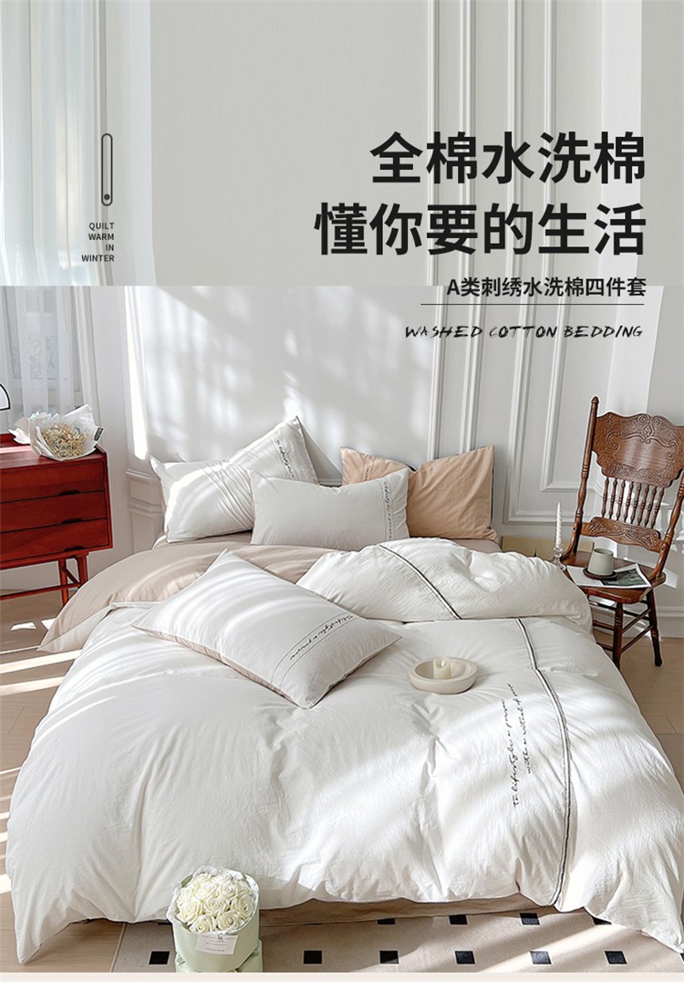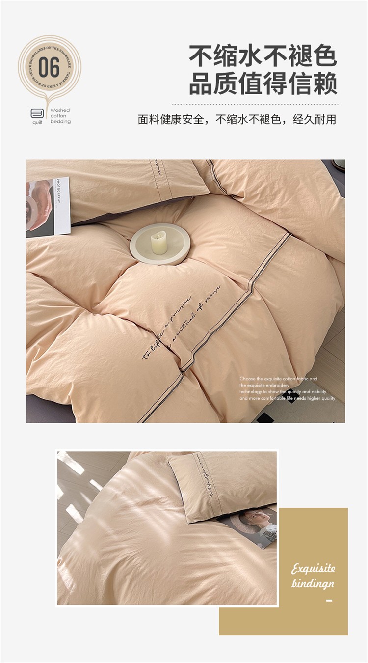 (总)拼社家纺 2025新款母婴及全棉水洗棉刺绣四件套纯棉床上用品,艾玛绿+卡其,繁星蓝+卡其,繁星蓝+玫瑰粉,红豆沙+雅灰,迷雾灰+玫瑰粉,蜜粉+雅灰,奶油白+卡其,奶油白+香橙,牛仔蓝+浅蓝,香橙+雅灰