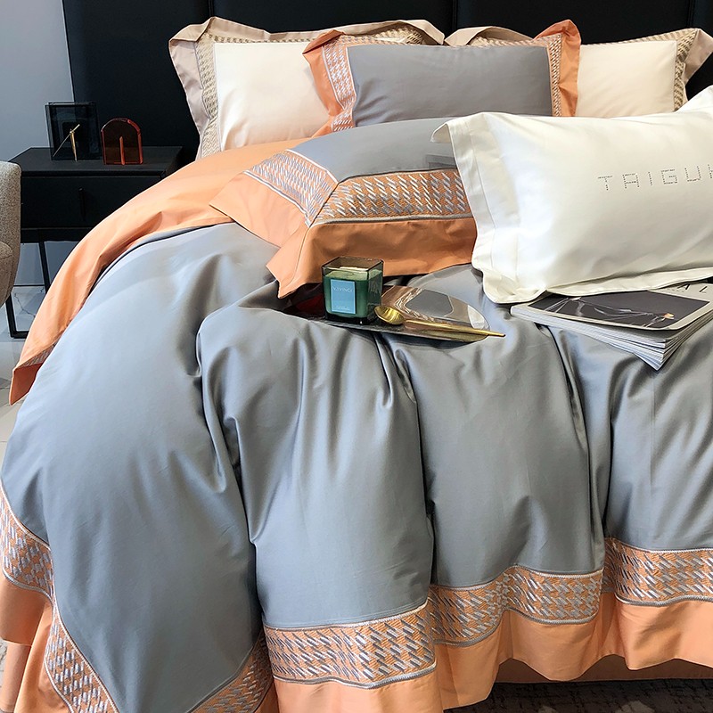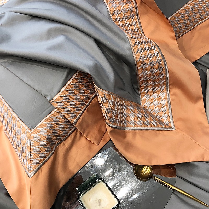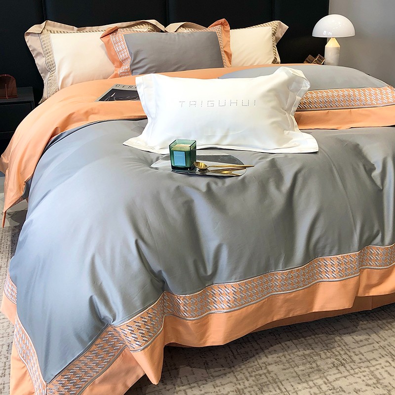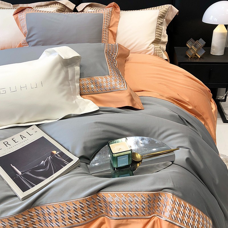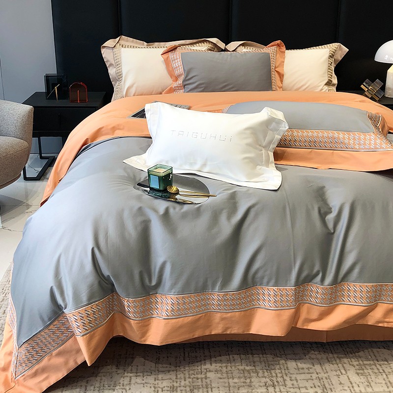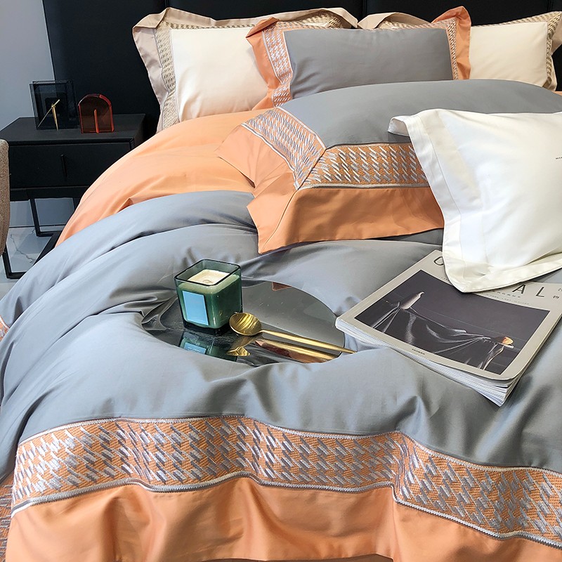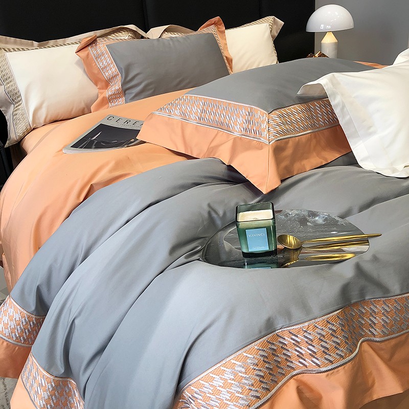 商品名称:太古汇 2023新款A类长绒棉刺绣千鸟格四件套-格伦格系列 长绒棉格伦格-灰色
