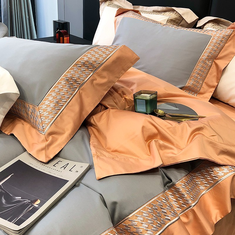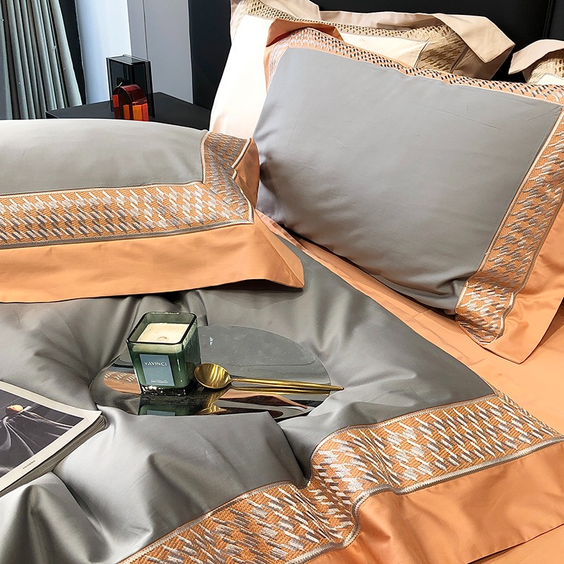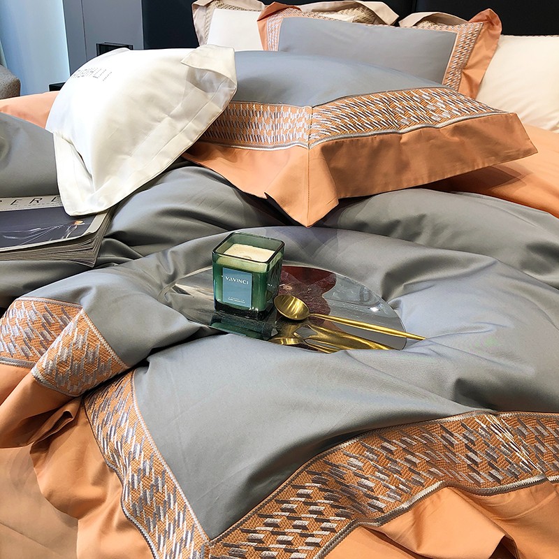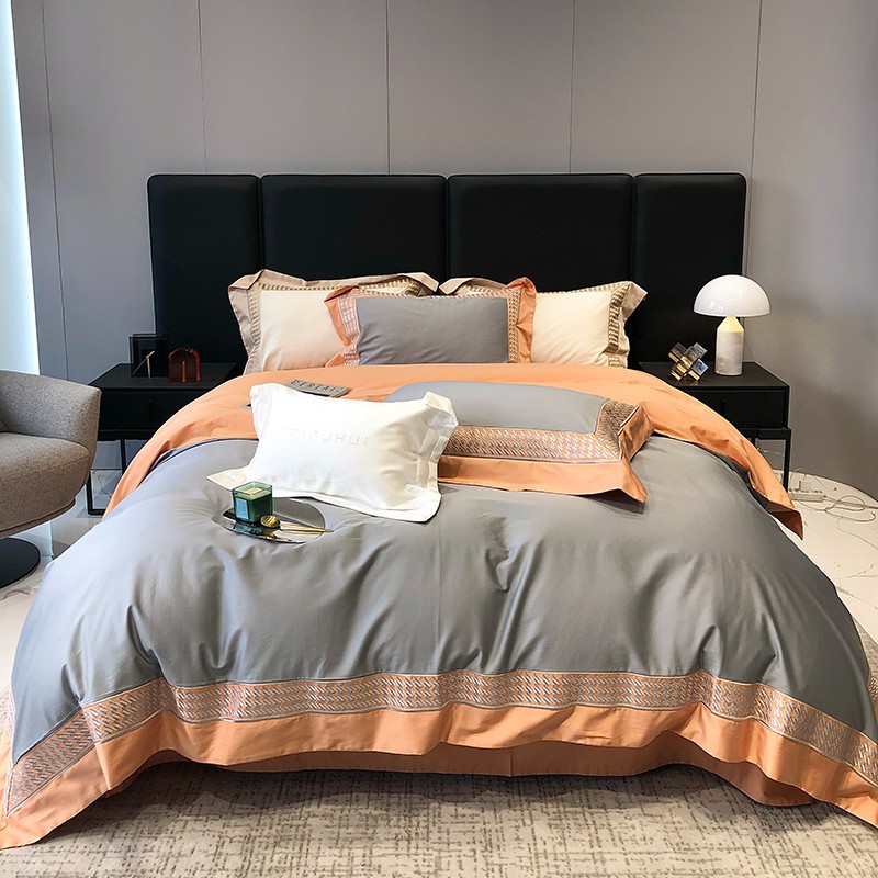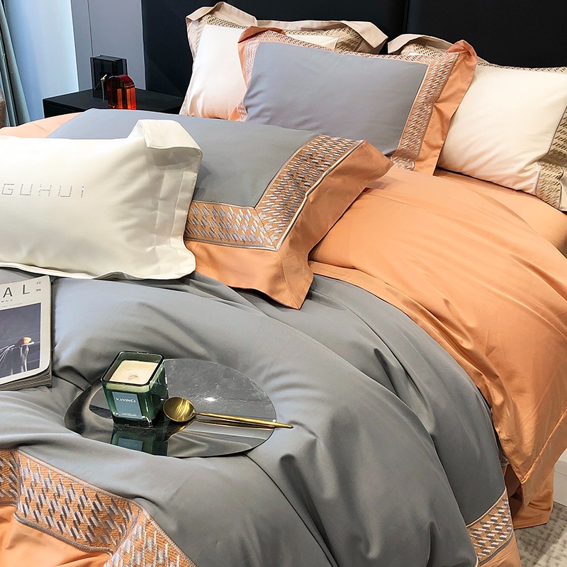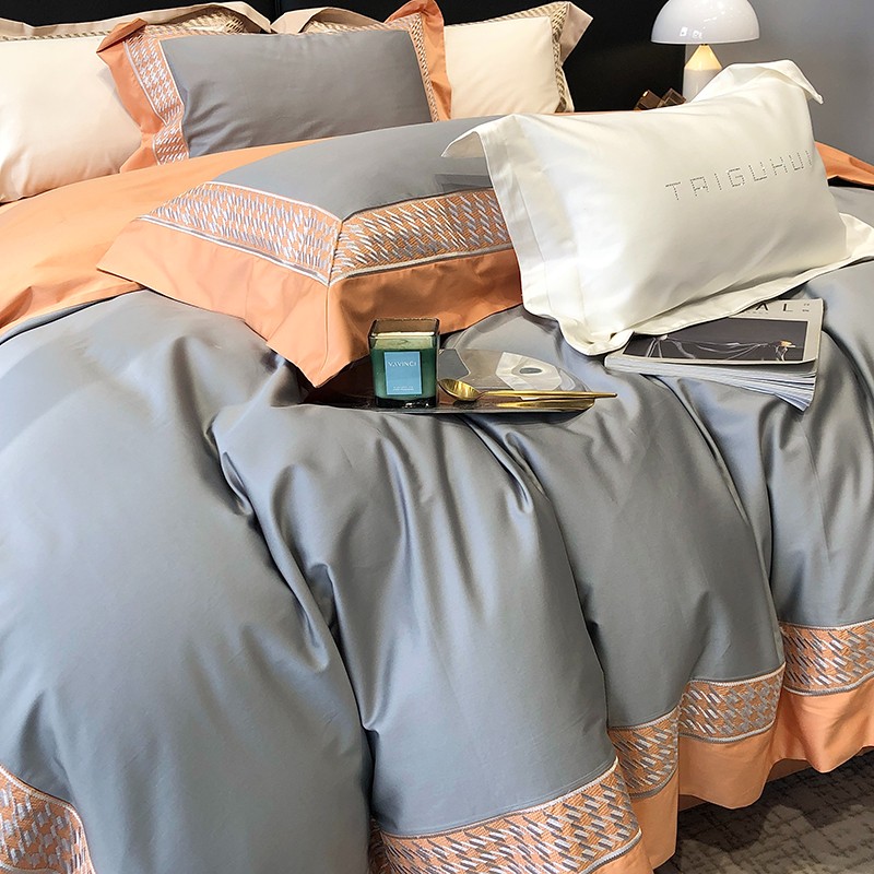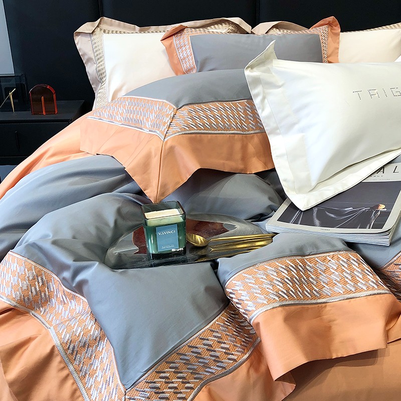 商品名称:太古汇 2023新款A类长绒棉刺绣千鸟格四件套-格伦格系列 长绒棉格伦格-灰色