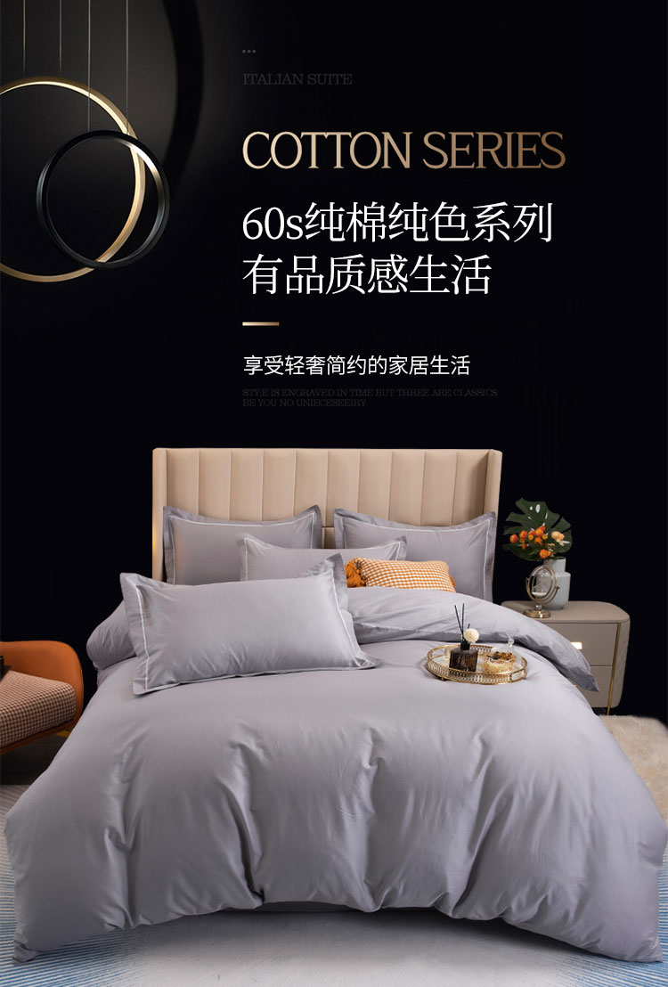当前位置: 91家纺网 > 商品网购 > 床品套件 > 四件套 > 全棉普通四件套 > 新款60支13376纯棉纯色四件套系列-四件套 银灰