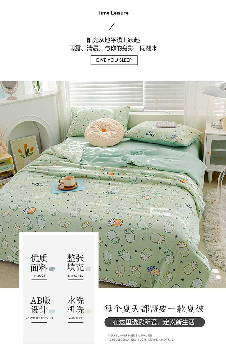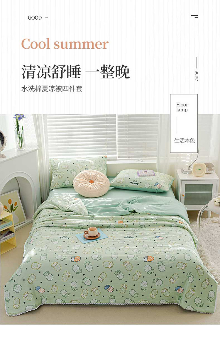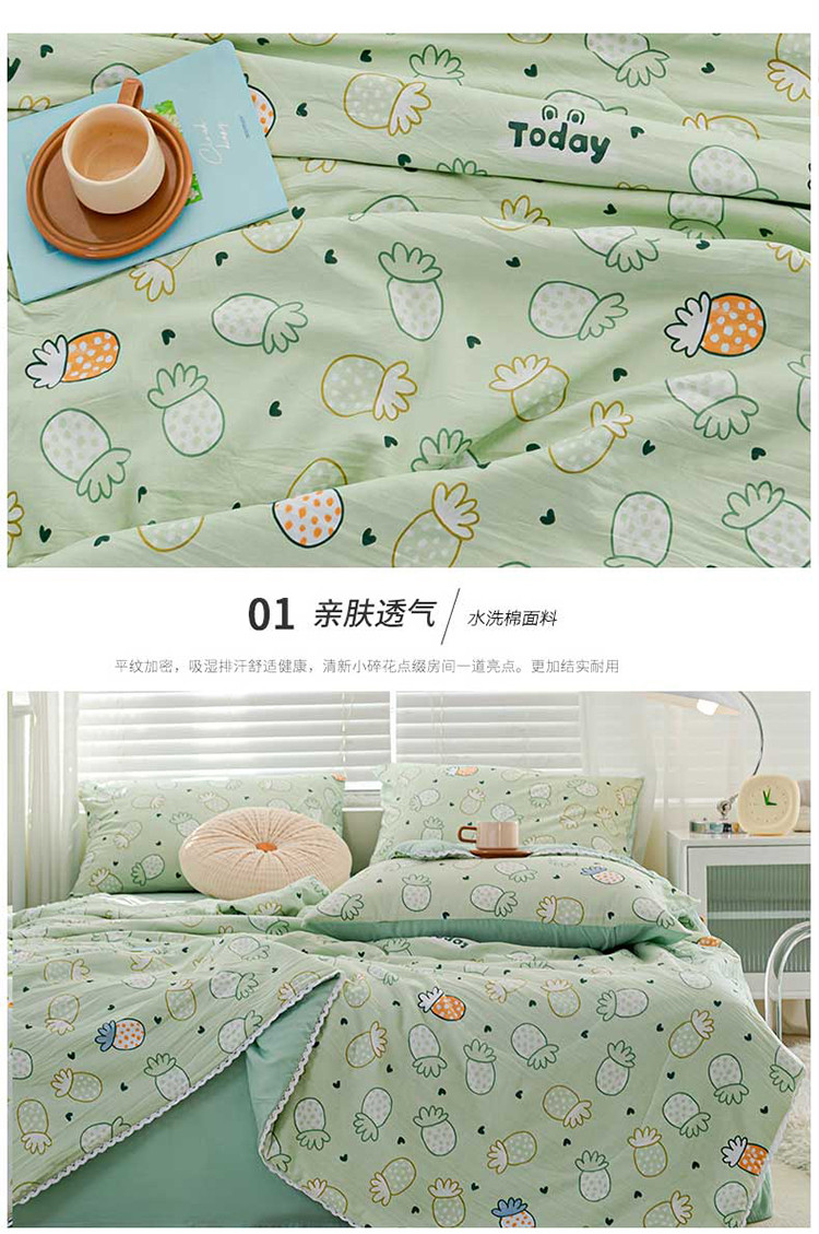 商品名称:羋多 2024新款小清新花边水洗棉夏被夏被四件套小菠萝