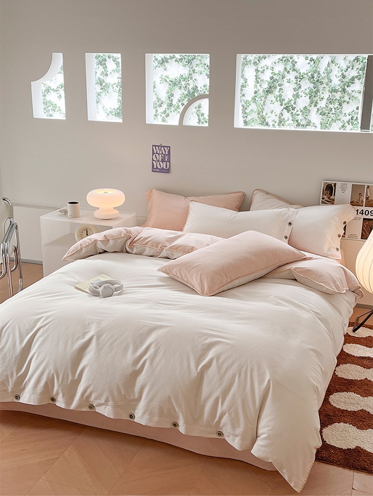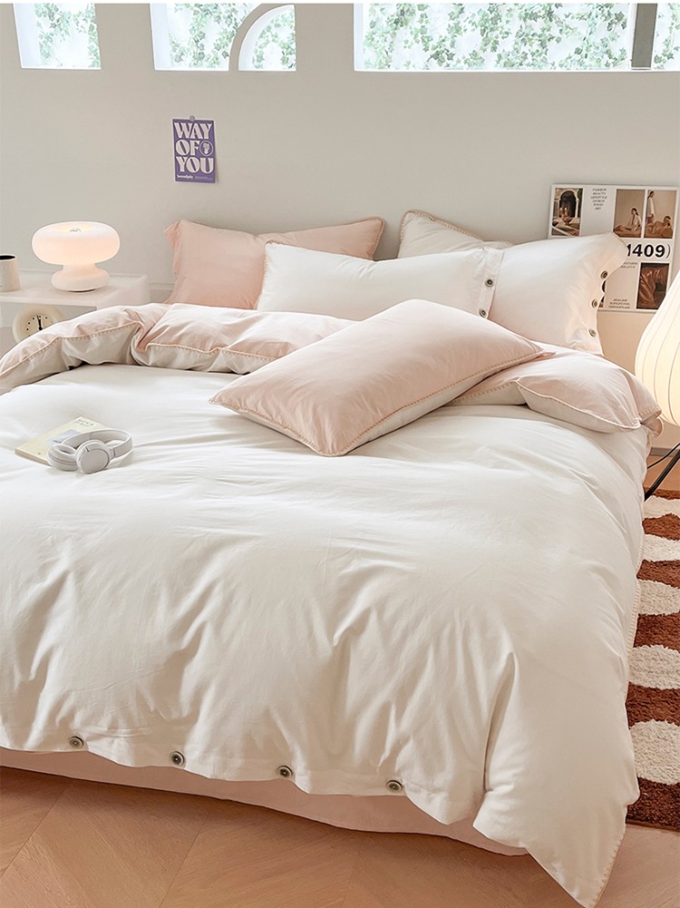 (总)蜜柚 2024新款A类全棉40支纯色纽扣款水洗棉四件套