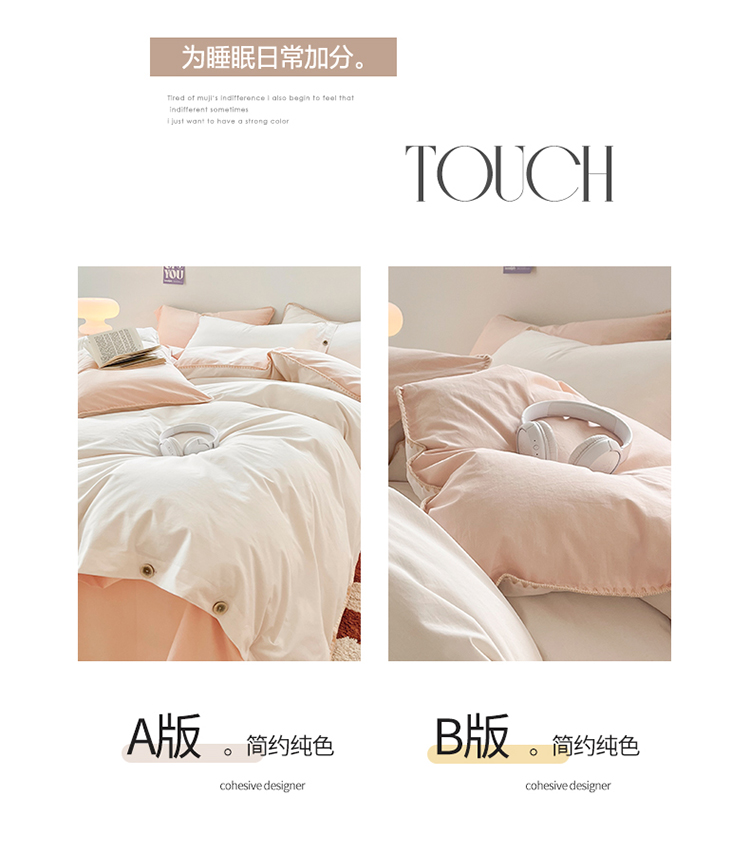 商品名称:(总)蜜柚 2024新款A类全棉40支纯色纽扣款水洗棉四件套