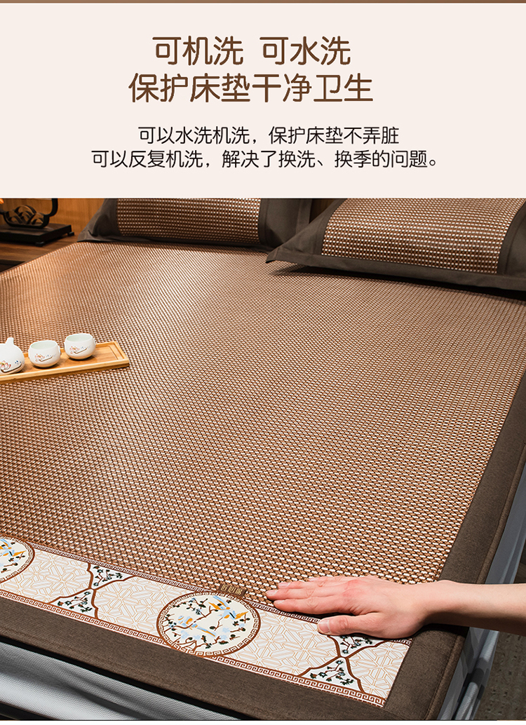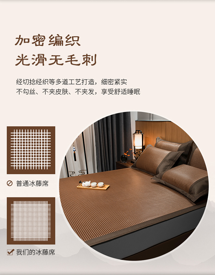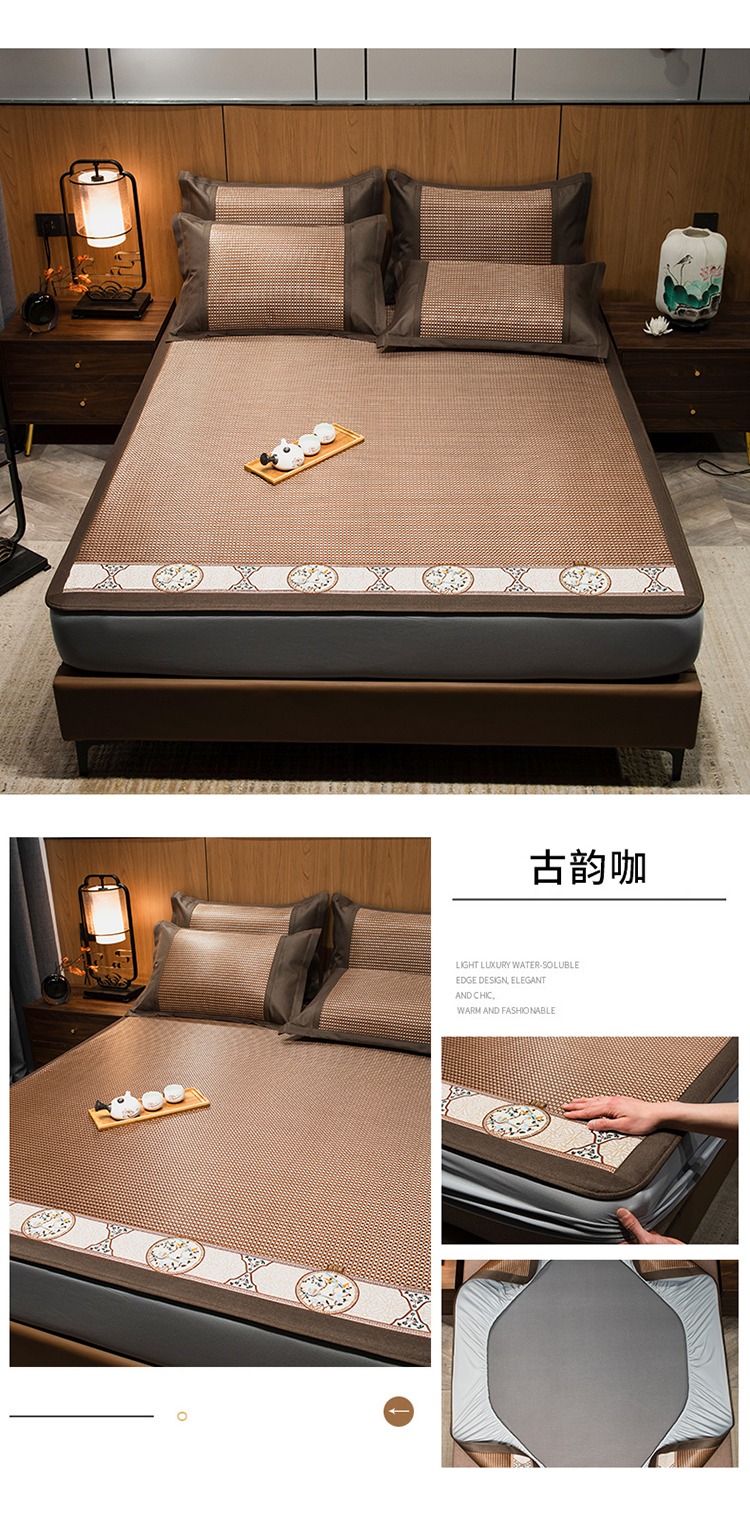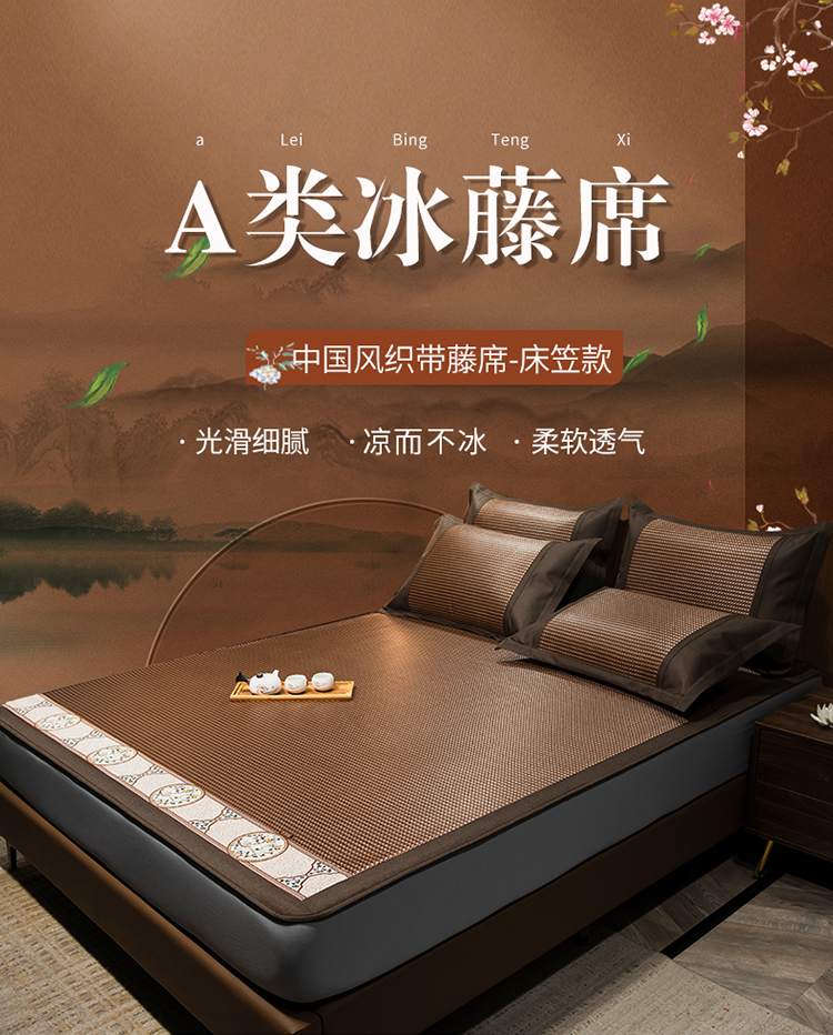商品名称:全季家居 2023新款A类中国风织带冰藤席床笠款 古韵咖