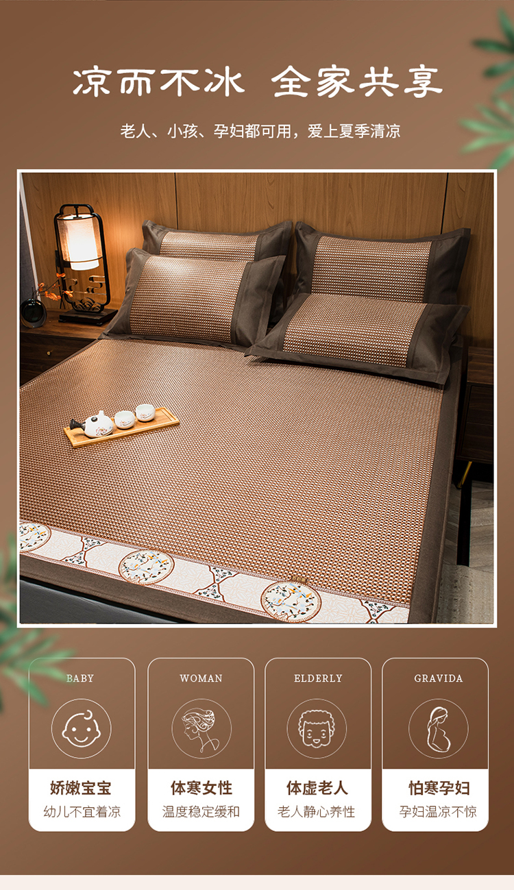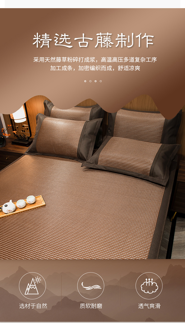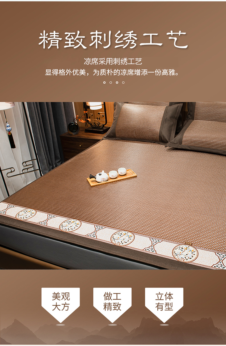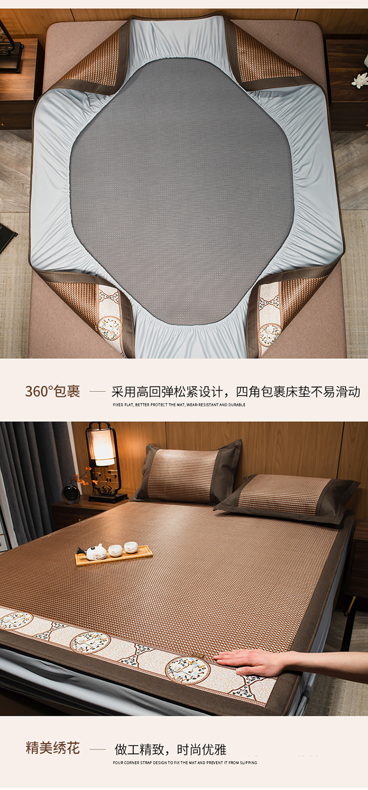 商品名称:全季家居 2023新款A类中国风织带冰藤席床笠款 古韵咖