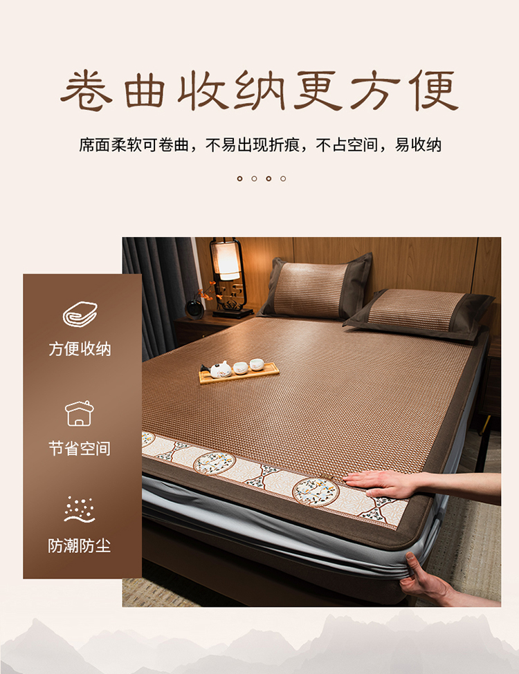 全季家居 2023新款A类中国风织带冰藤席床笠款 古韵咖