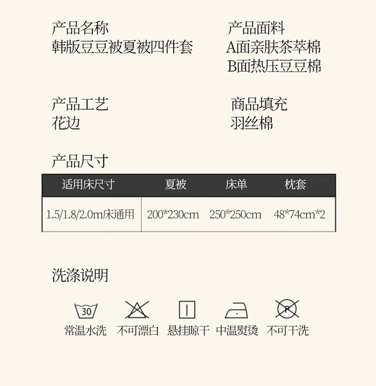 商品名称:(总)吾欢心 2024新款韩版豆豆被夏被四件套