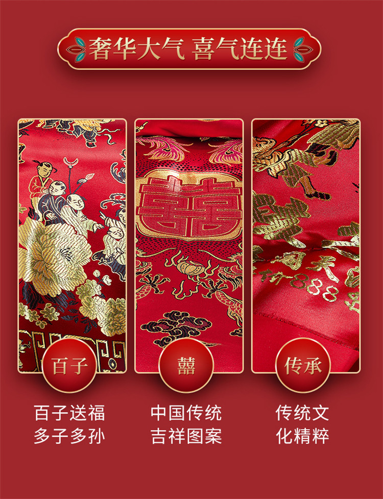 (总)玉雅家纺 2025新款中式复古红黑格调刺绣婚庆四件套,多喜乐,喜满满,婚庆毛巾绣-其乐龍龍,婚庆毛巾绣-如意,婚庆毛巾绣-柿柿如意,婚庆毛巾绣-囍多多