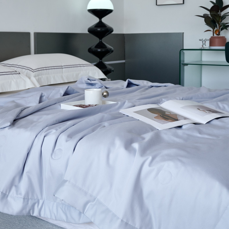 榻尚 2023新款100支贡缎长绒棉超柔夏被空调被子被芯 天青色