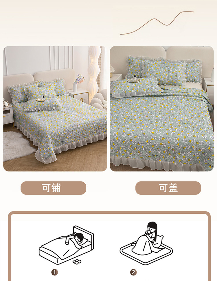 商品名称:梓依 2023新款 亲肤夹棉床盖系列 绿色字母