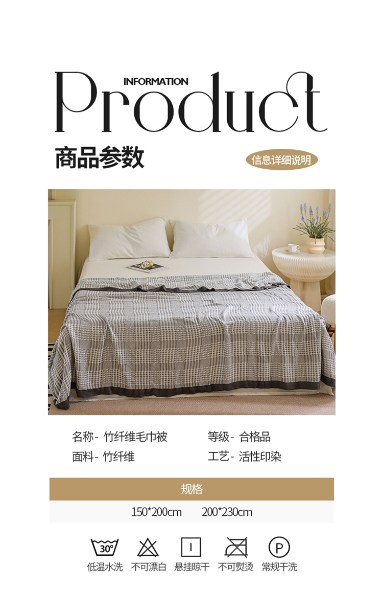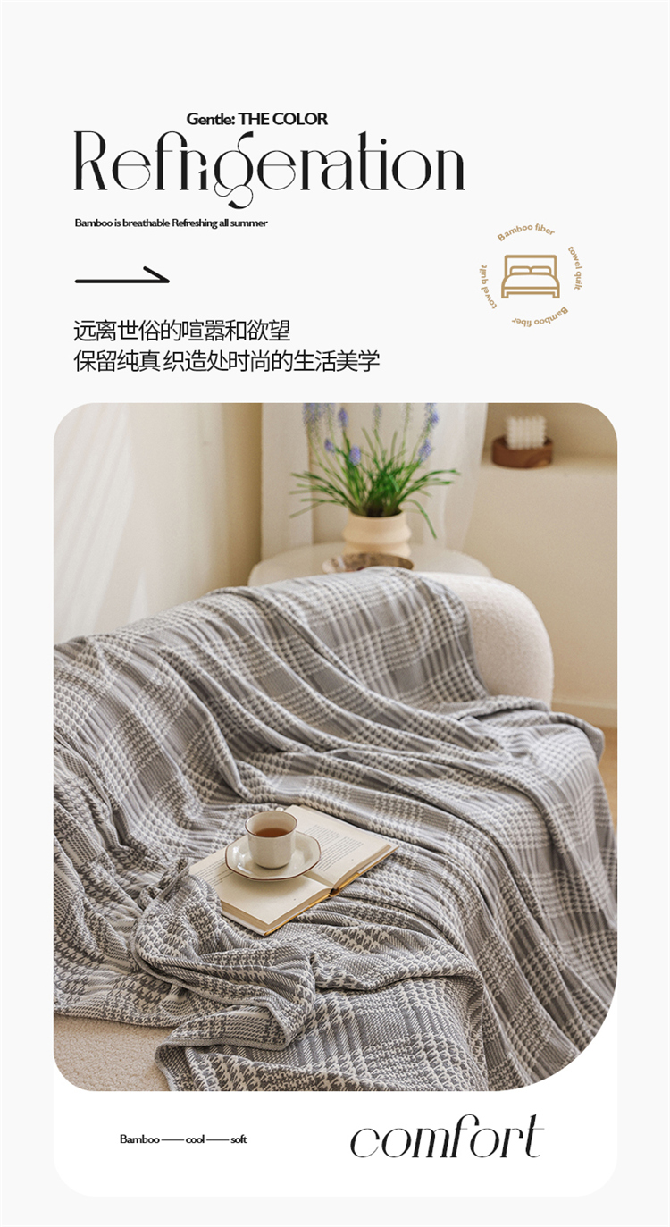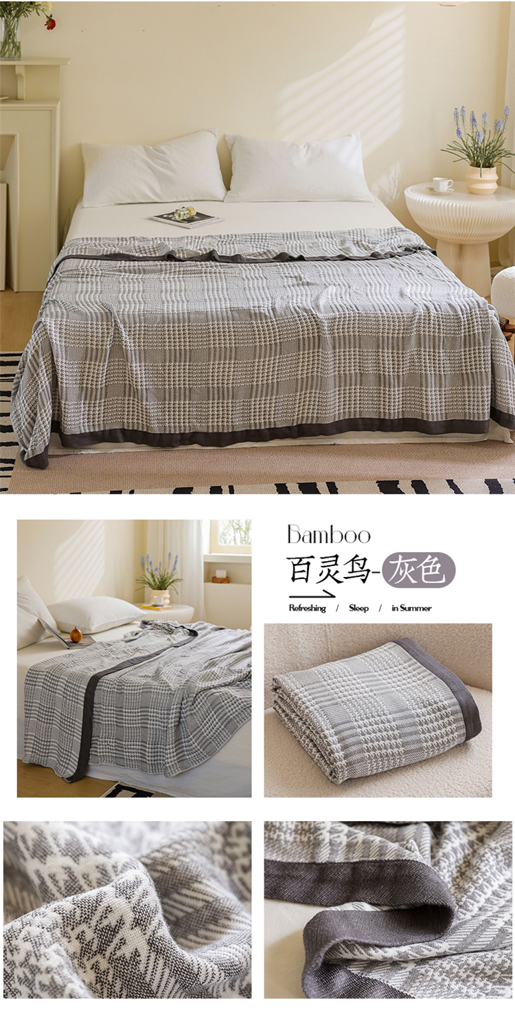 商品名称:雯雨家纺 2023新款竹纤维毛巾被 百灵鸟-灰色