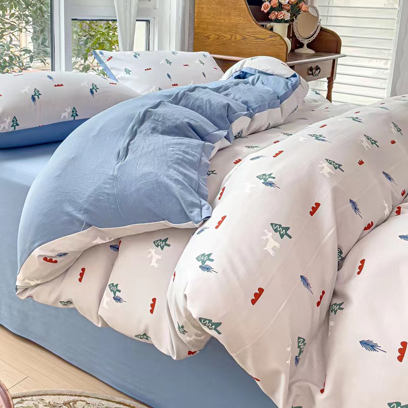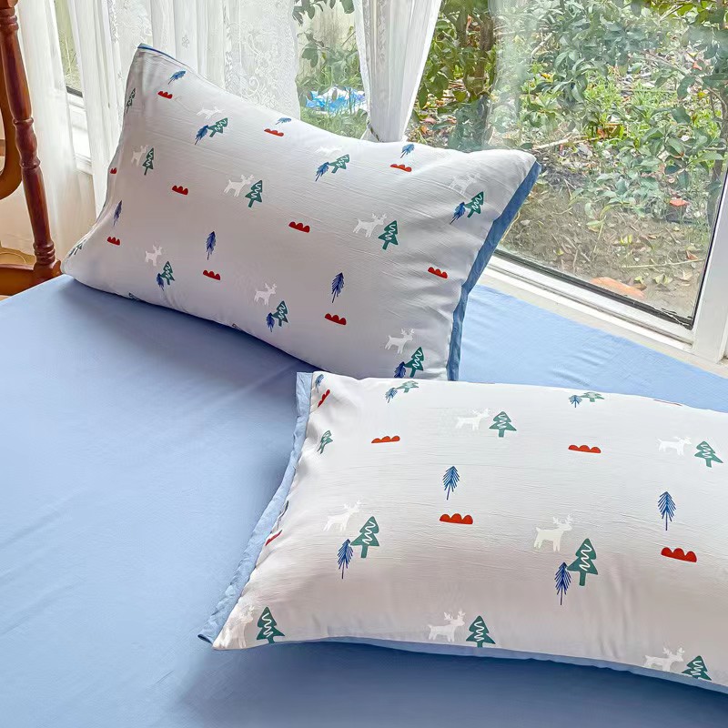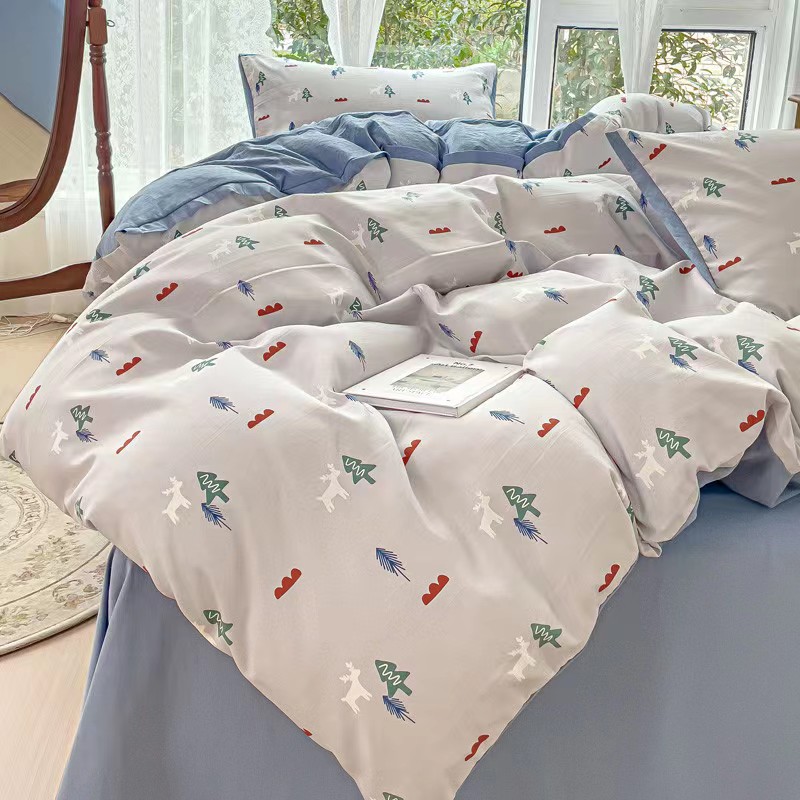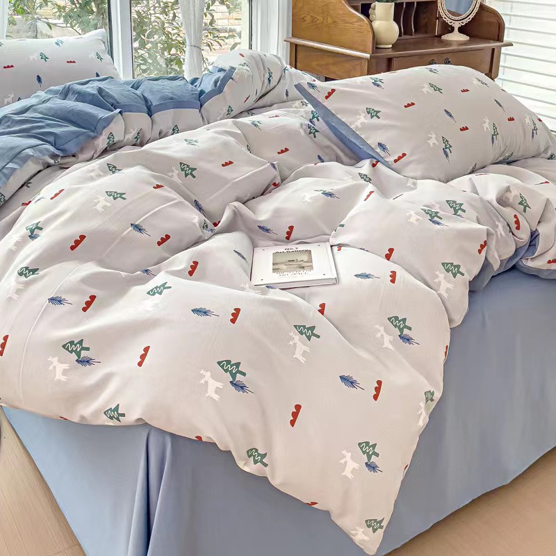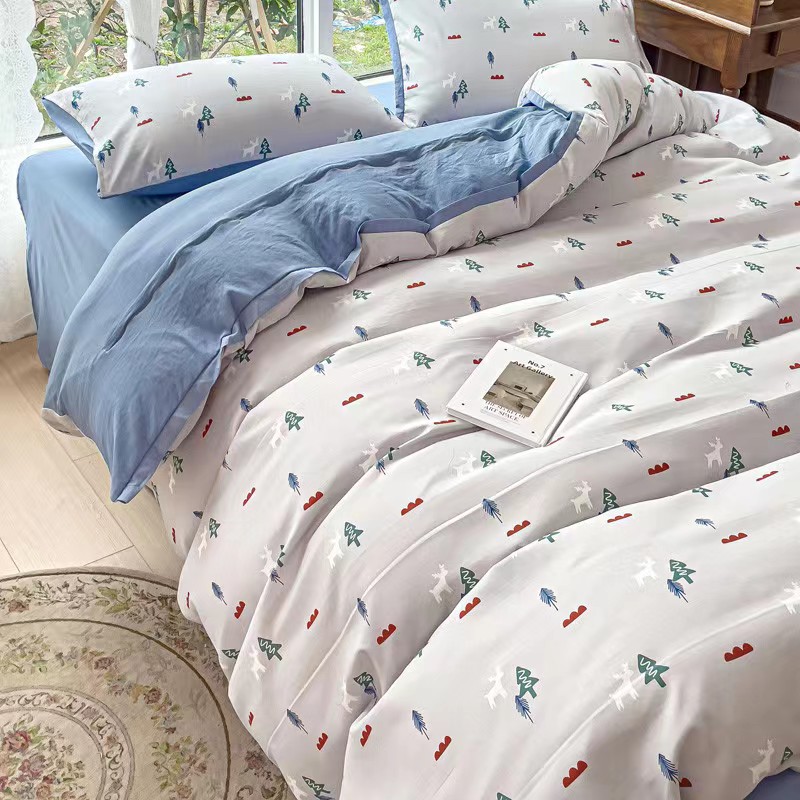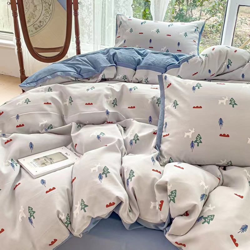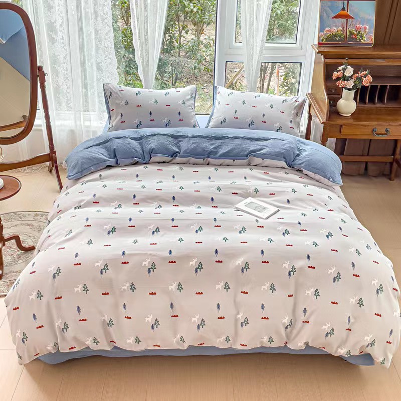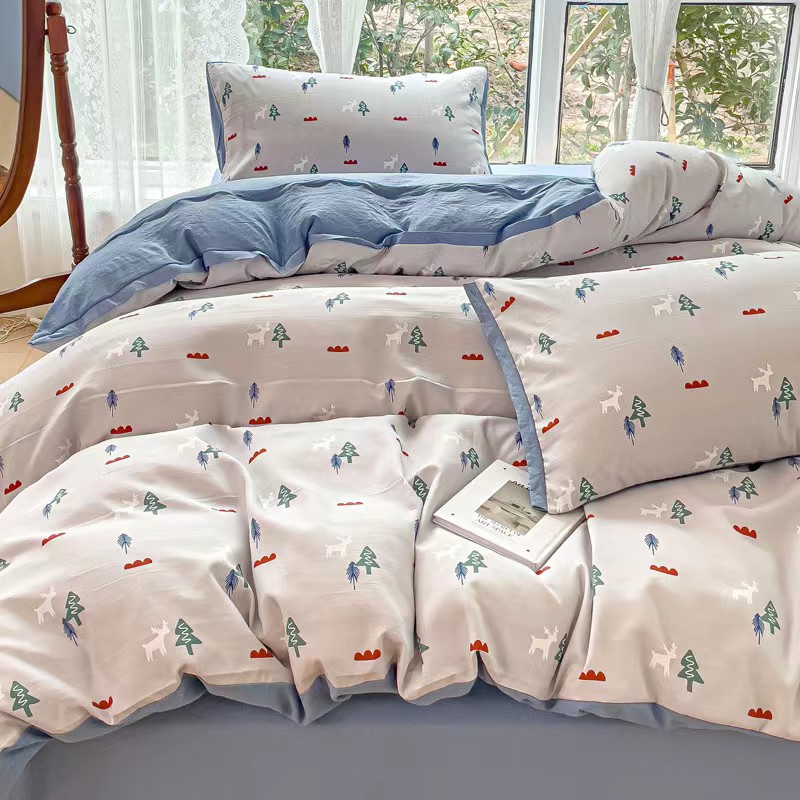 玖琳家纺 2023新款麻小棉水洗棉双层纱四件套 松树