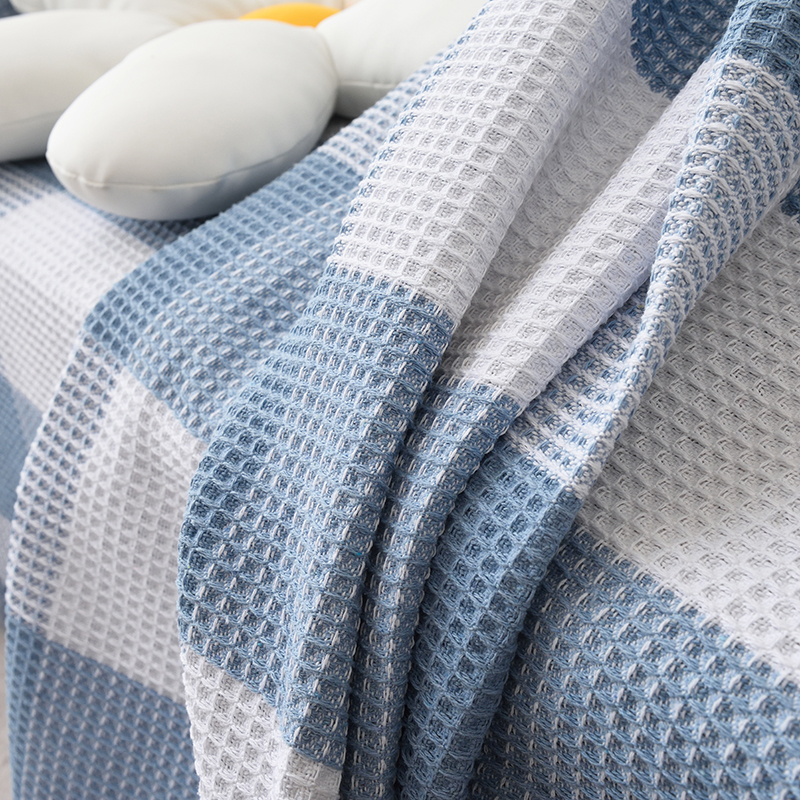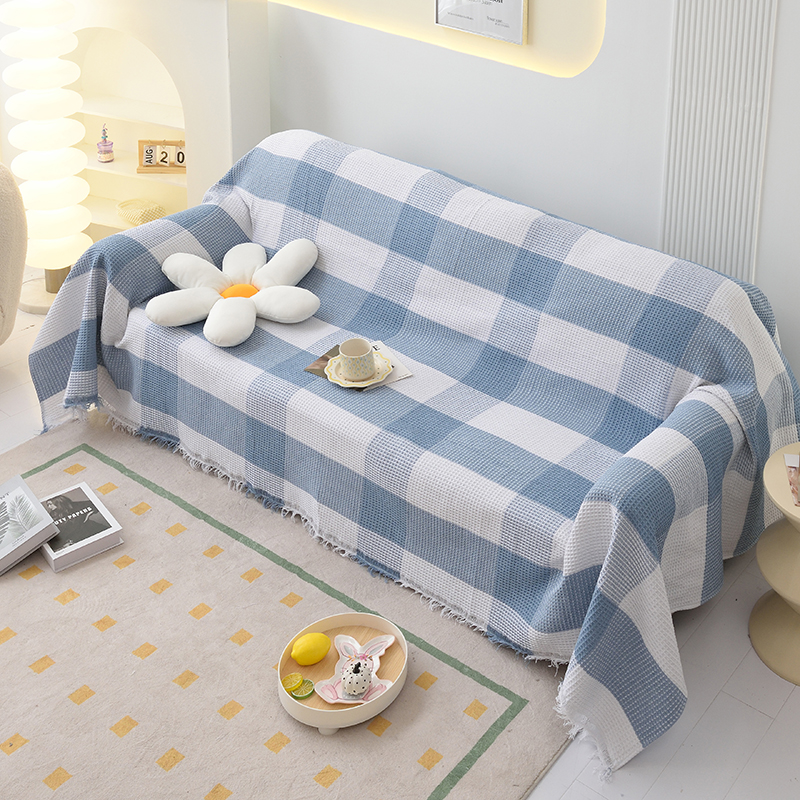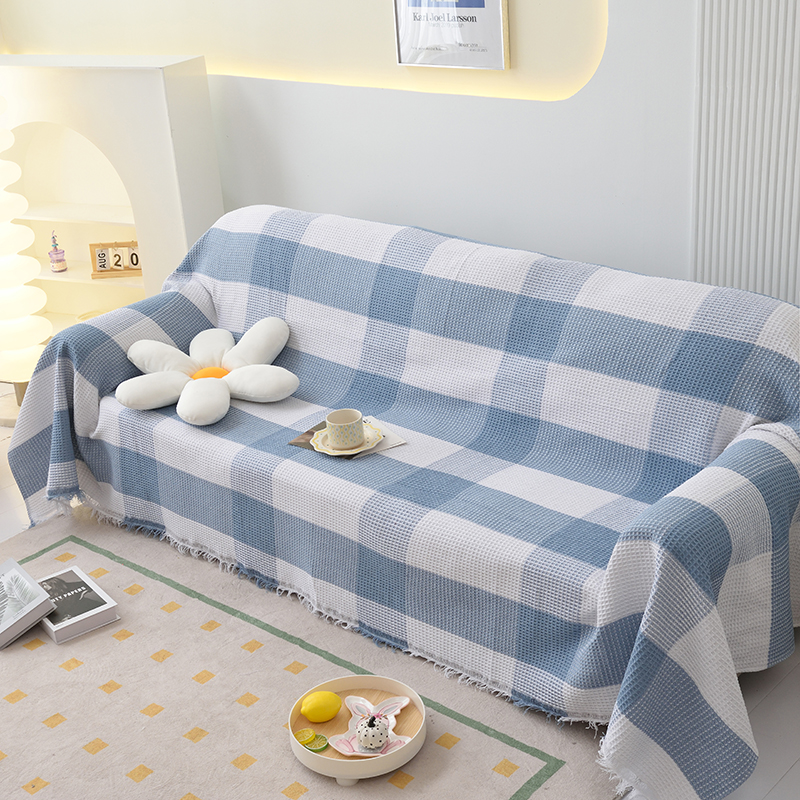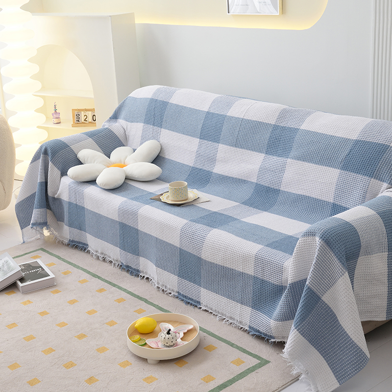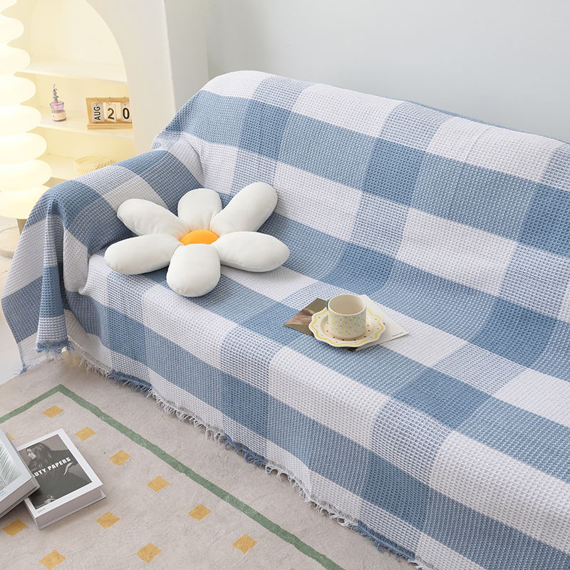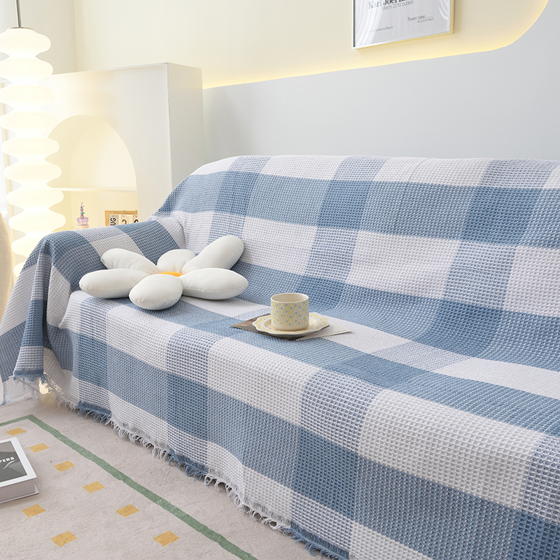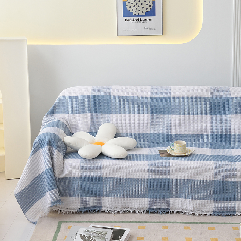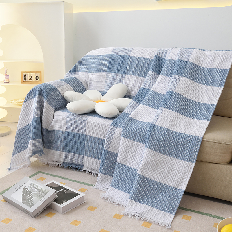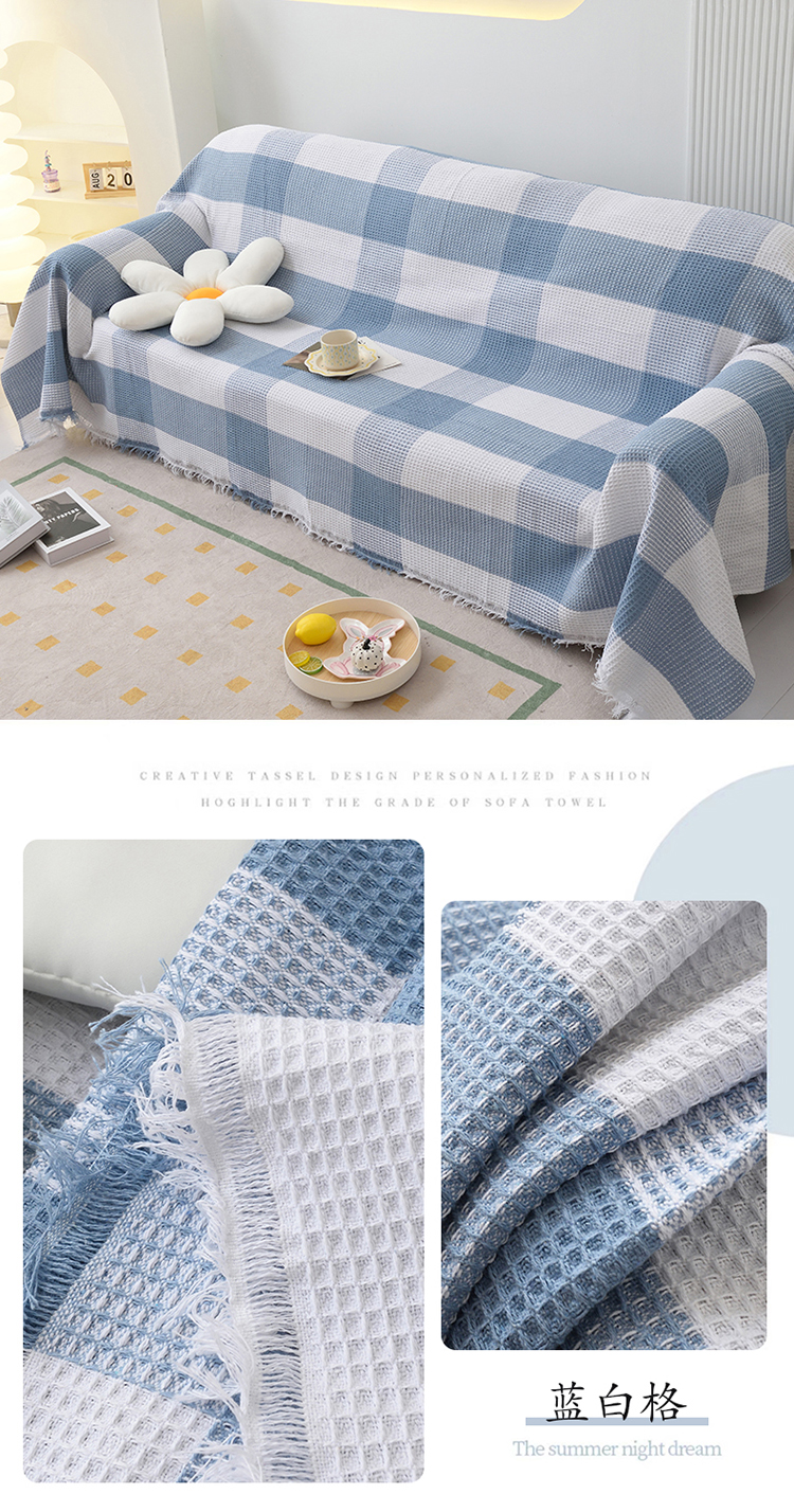 当前位置: 91家纺网 > 商品网购 > 居家布艺 > 坐垫/椅垫/沙发垫 > 沙发垫 > 启博家纺 2023爆款针织棉线沙发巾 蓝白格