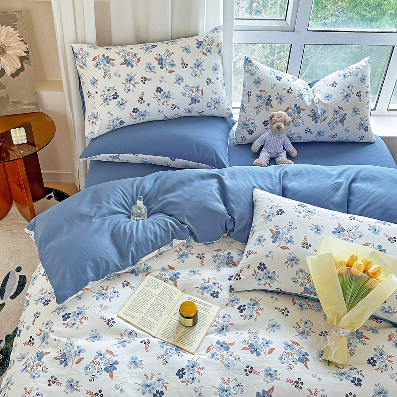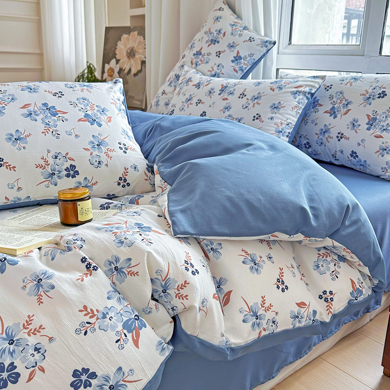 美莱 2023直播爆款水洗棉麻四件套小清新套件可谈价 暗香