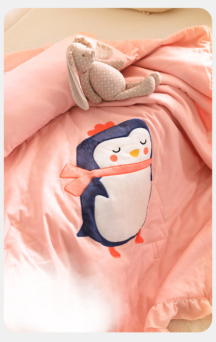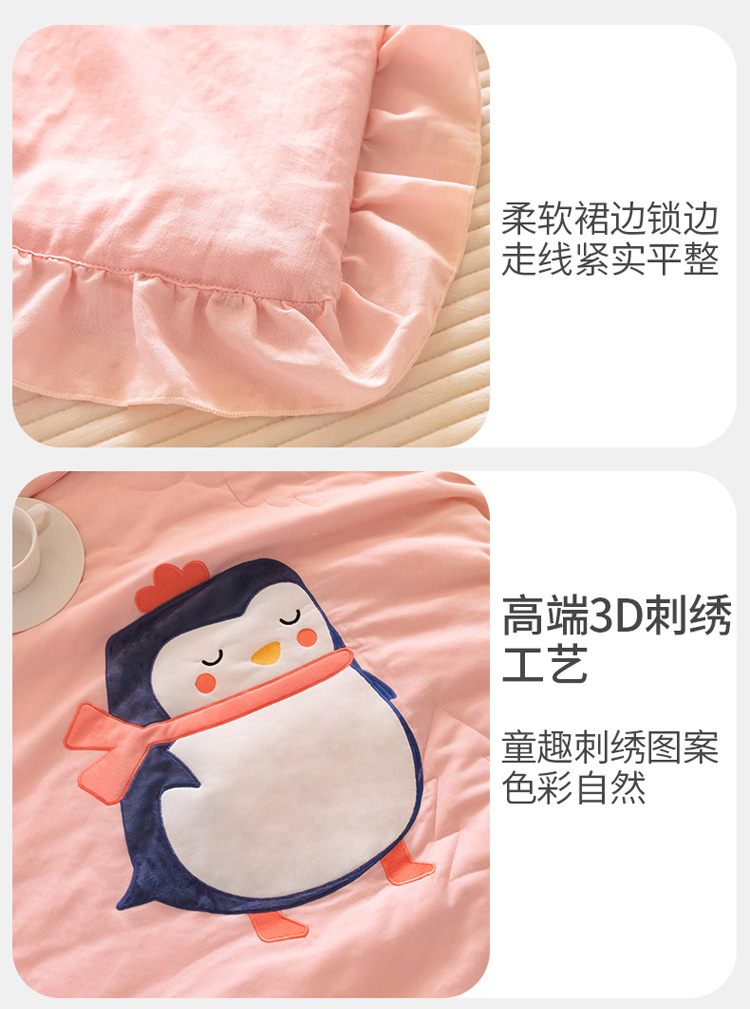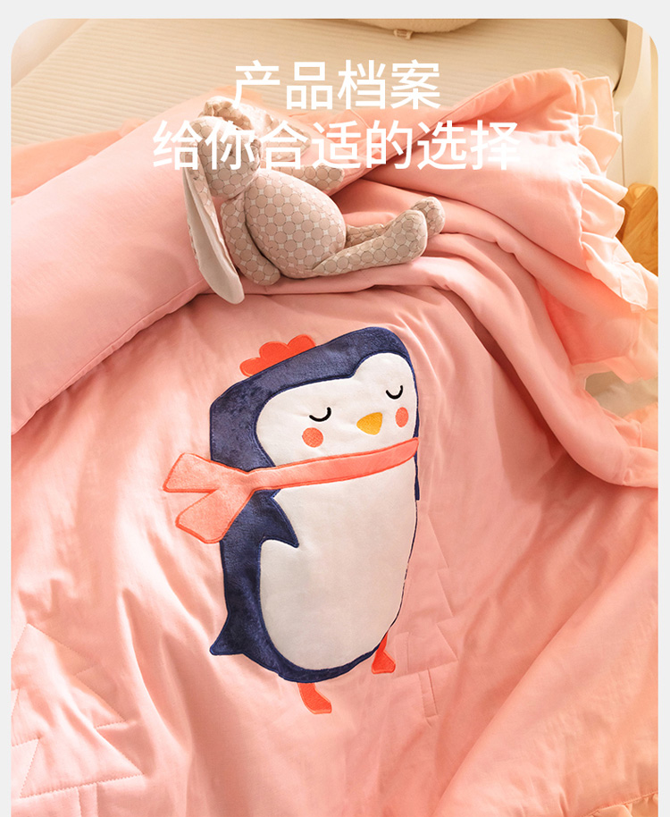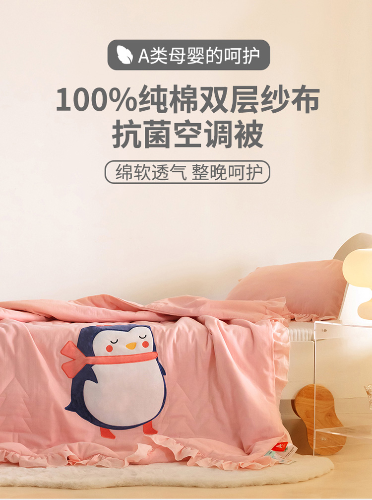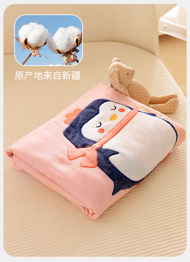 商品名称:喜多兔 2023新款小轻柔纱布纯棉双层纱空调被 粉色萌企鹅