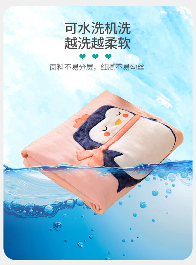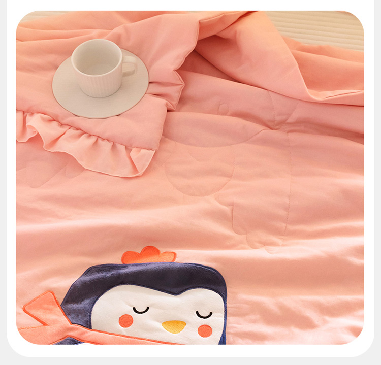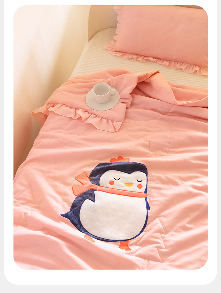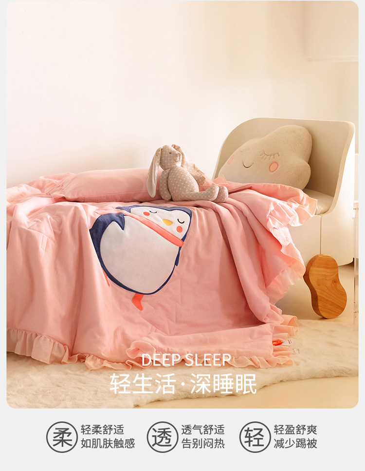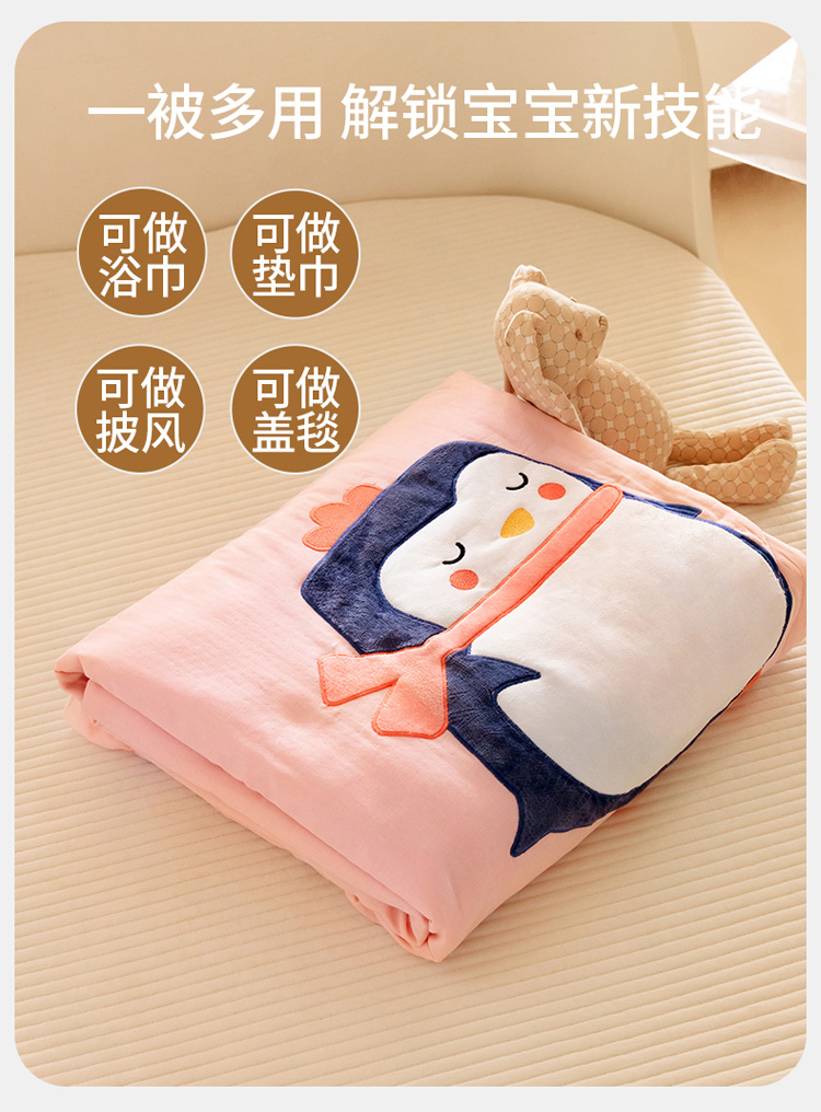 商品名称:喜多兔 2023新款小轻柔纱布纯棉双层纱空调被 粉色萌企鹅