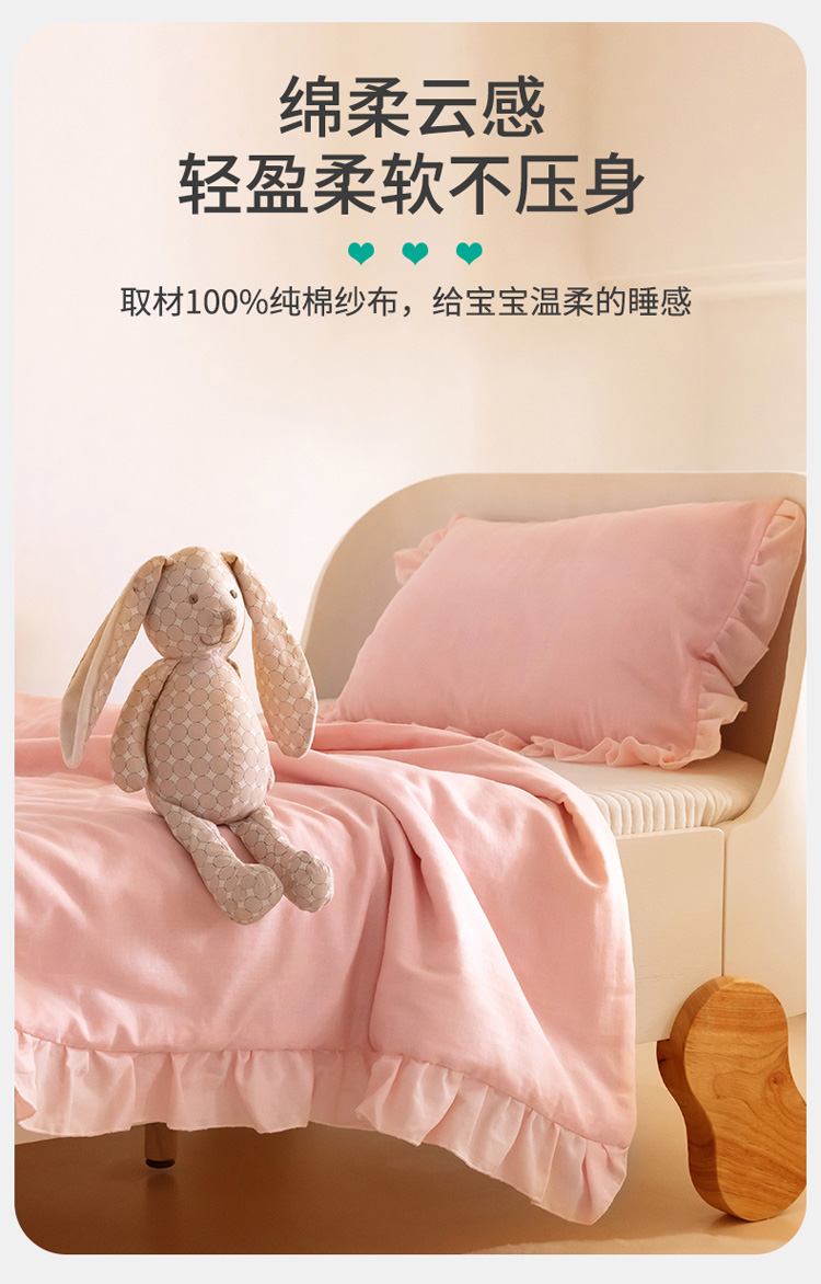 (总)喜多兔儿童家纺 2025春夏新款小软萌贴布绣纱布被,粉色软萌小兔,卡其色软萌小熊,蓝色软萌小象,绿色软萌恐龙,组合图仅供展示