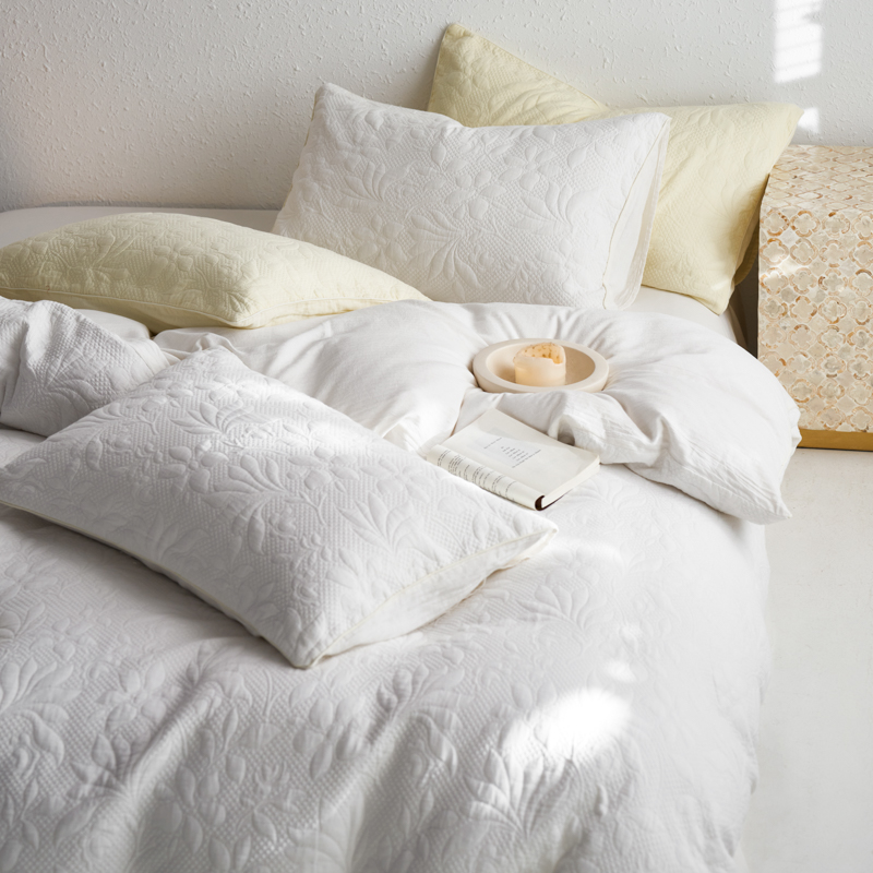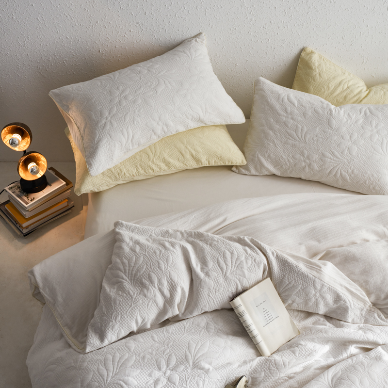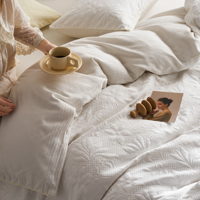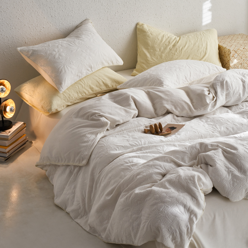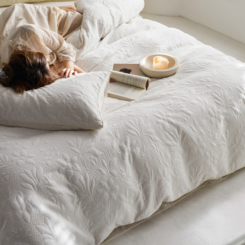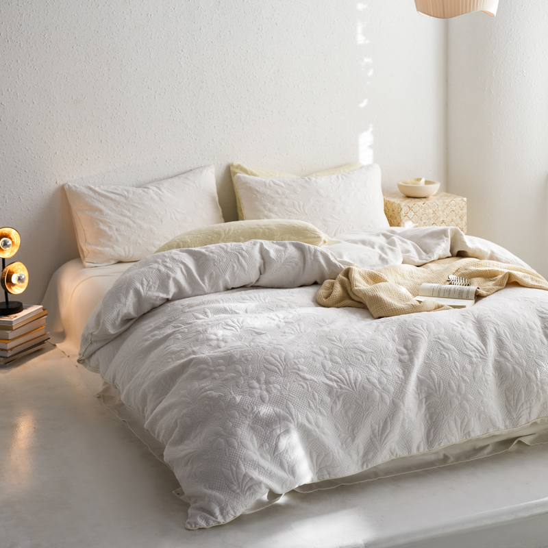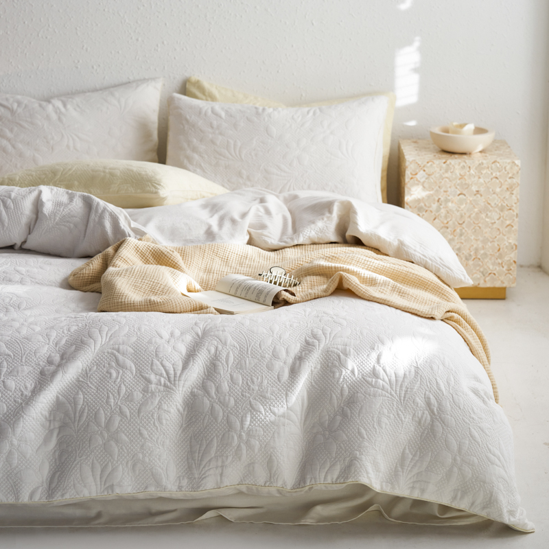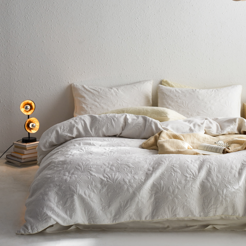 简家居 2023新款AB版全棉浮雕提花四件套-沐春 茶白