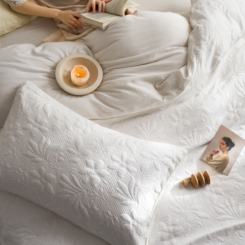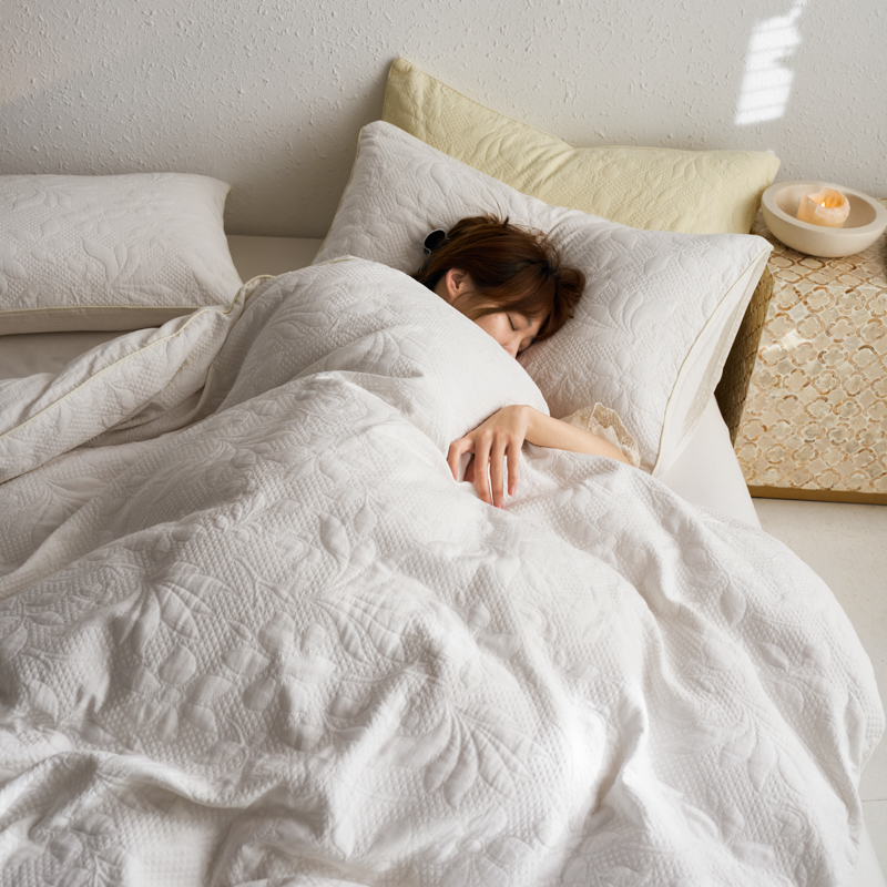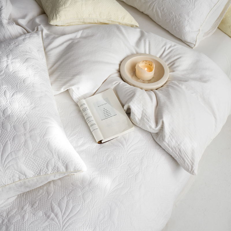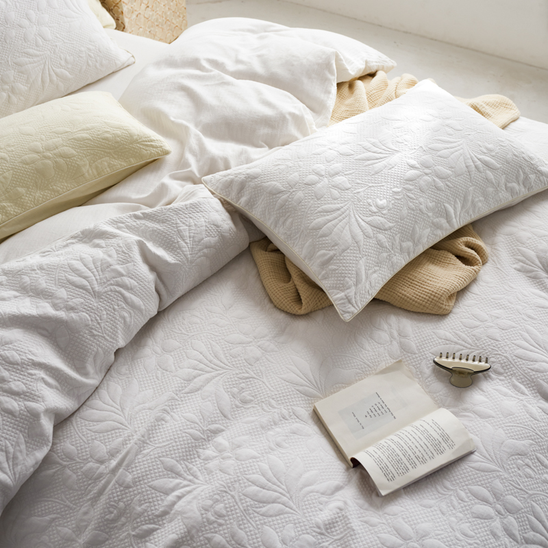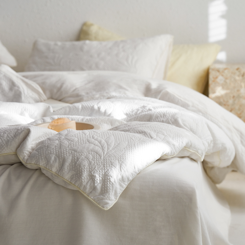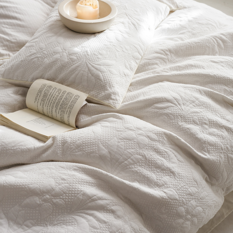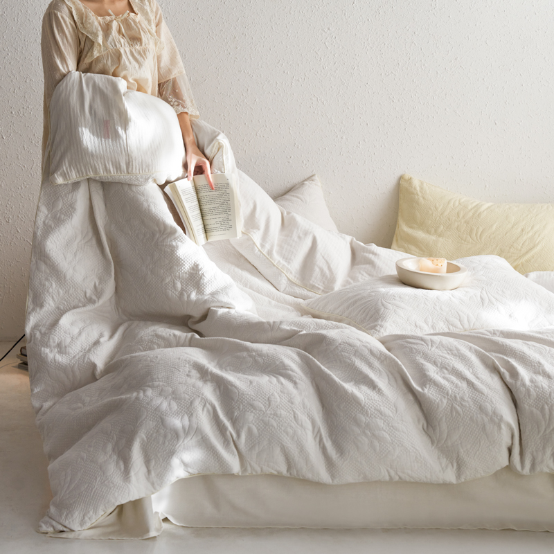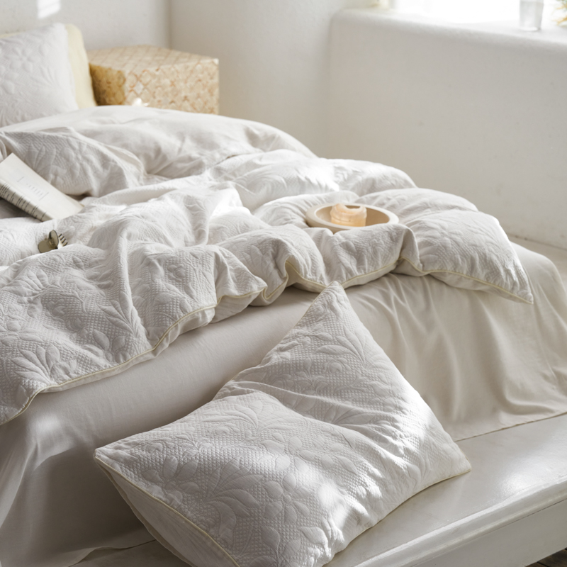 简家居 2023新款AB版全棉浮雕提花四件套-沐春 茶白