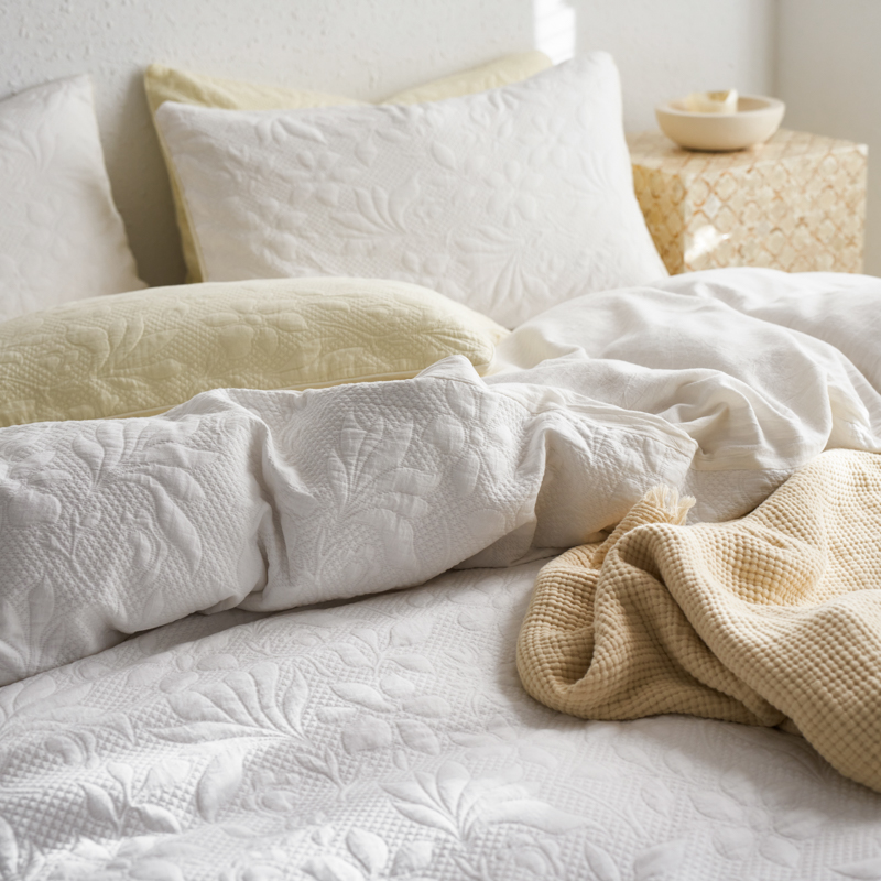 (总)简家居 2025新款亲肤舒适棉麻床盖三件套,棉麻提花