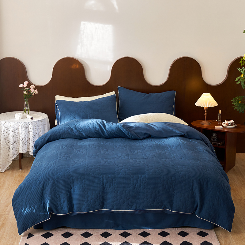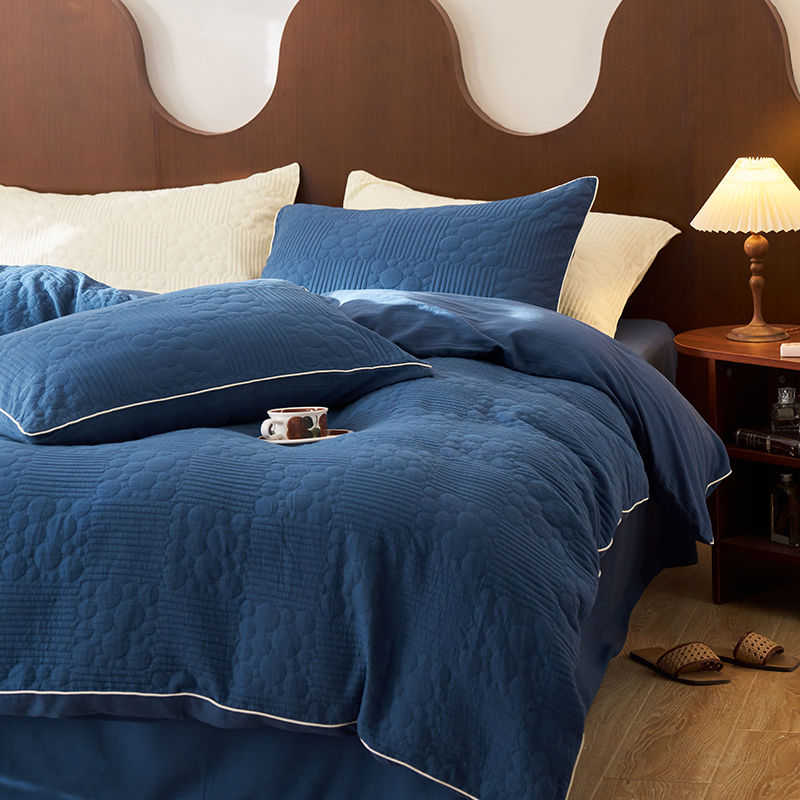 商品名称:简家居 2023新款AB版全棉浮雕提花四件套-星回 深海蓝