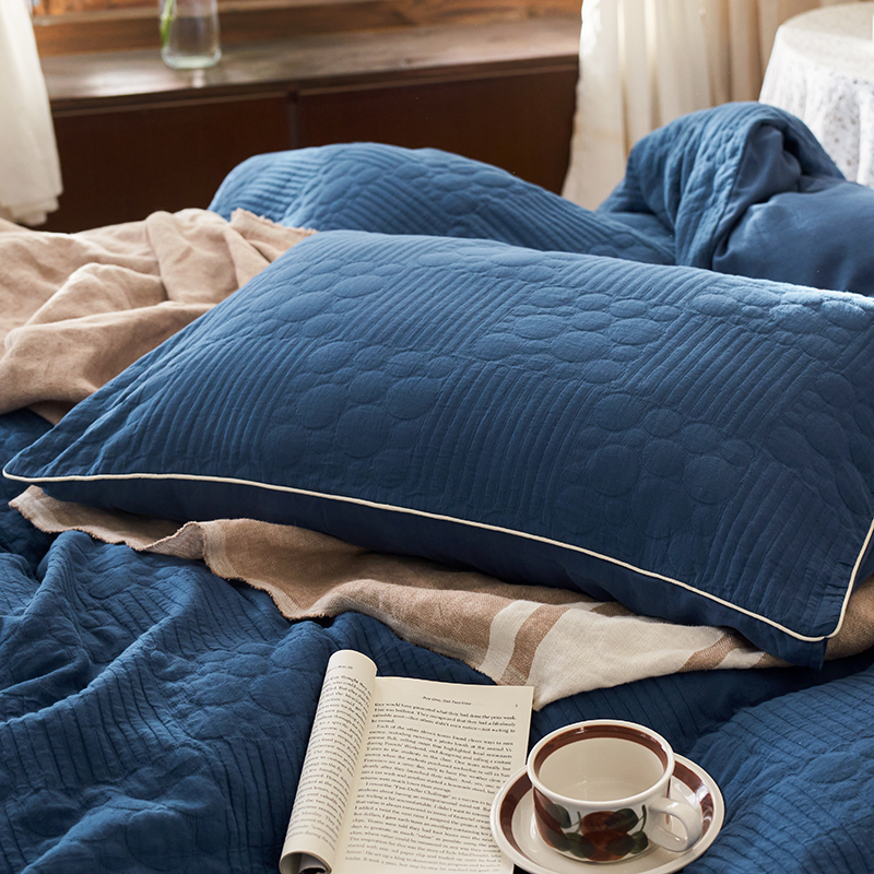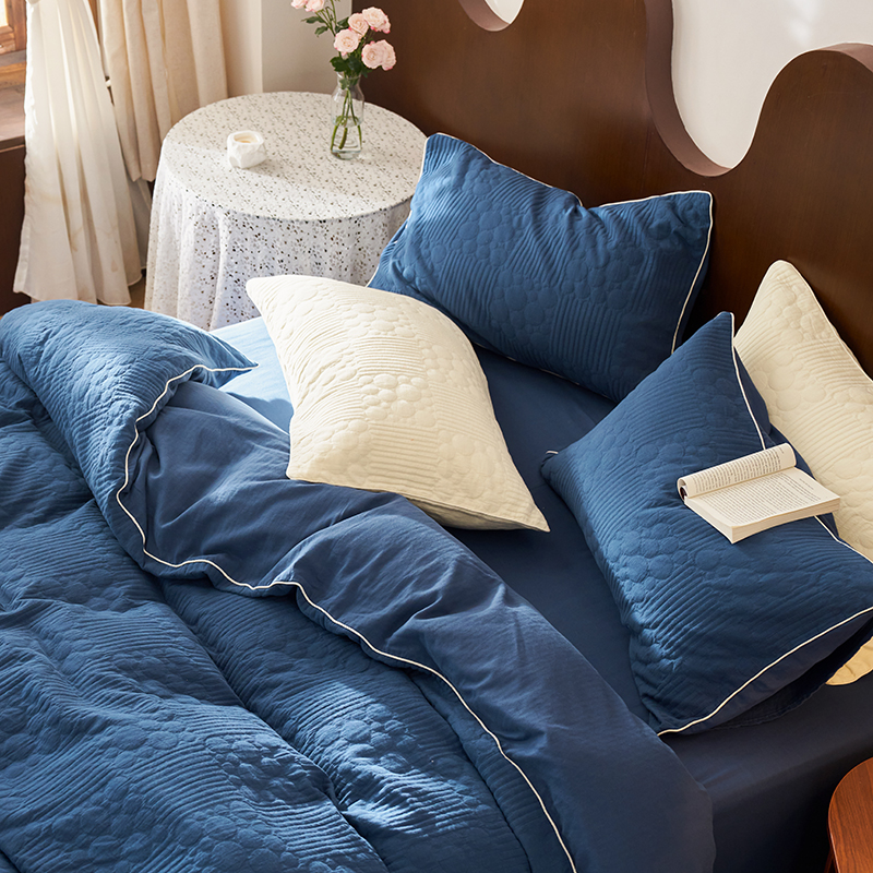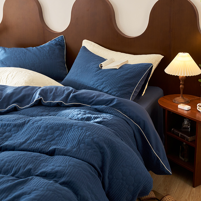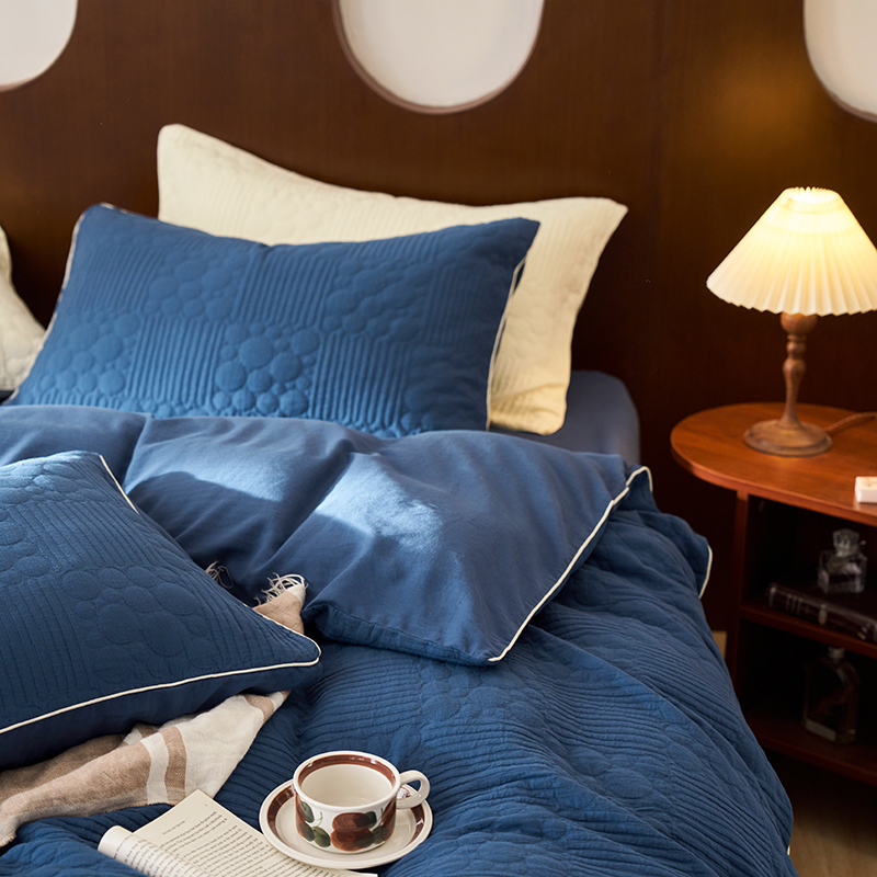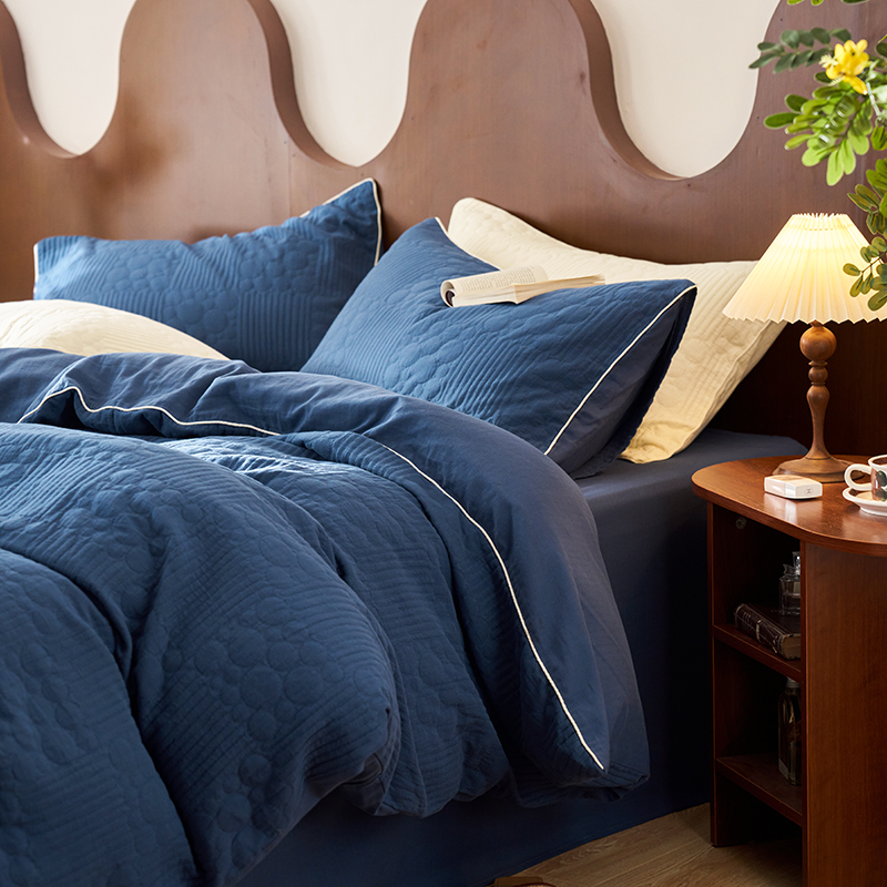 简家居 2023新款AB版全棉浮雕提花四件套-星回 深海蓝