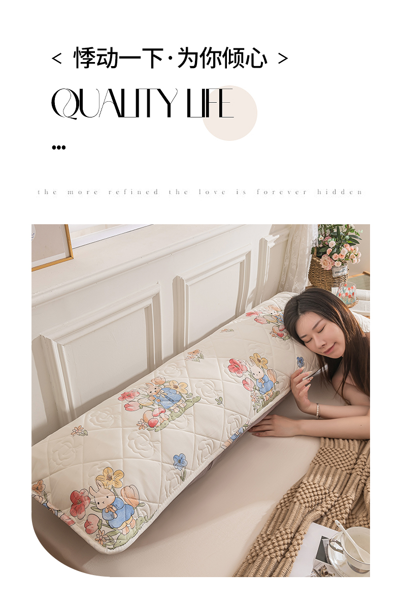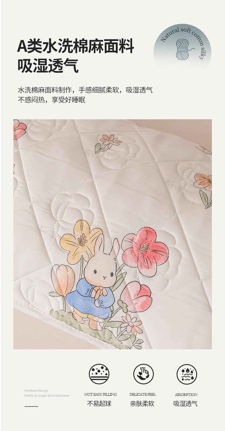 商品名称:梦舒羽 2025新款水洗棉麻单人夹棉枕头套大豆纤维双人枕套 爱心兔