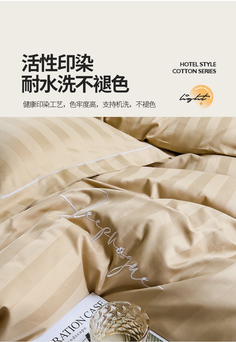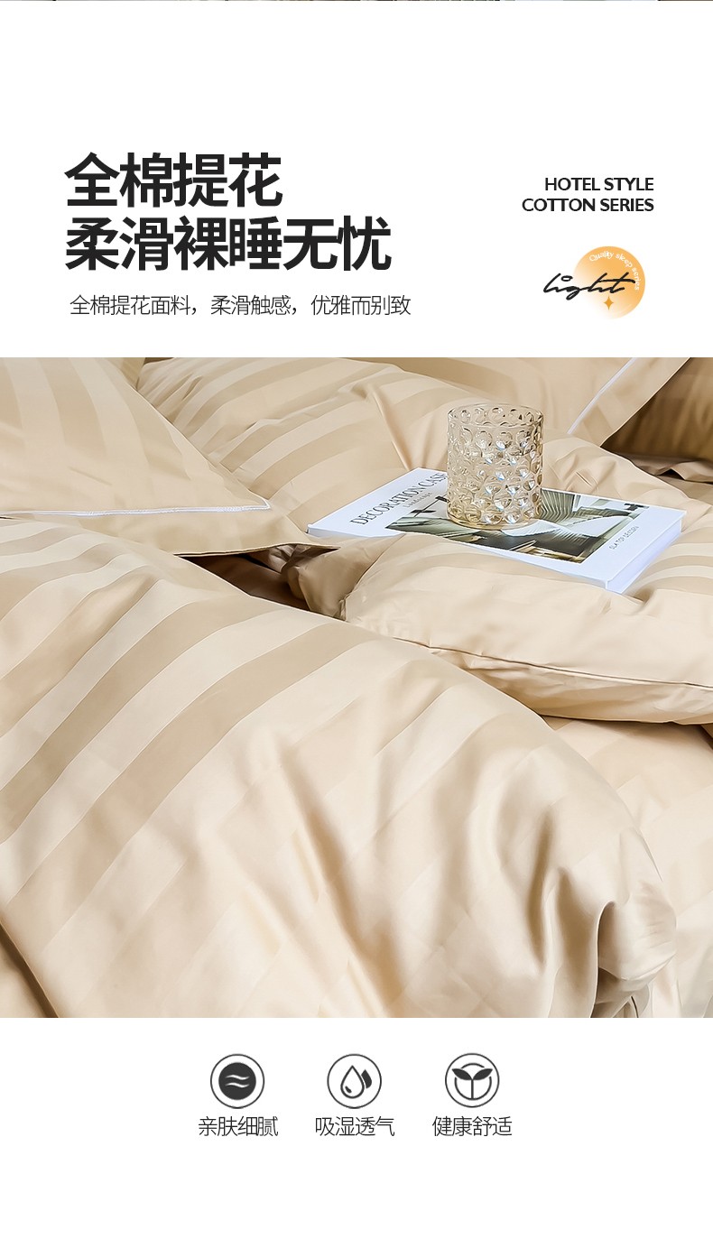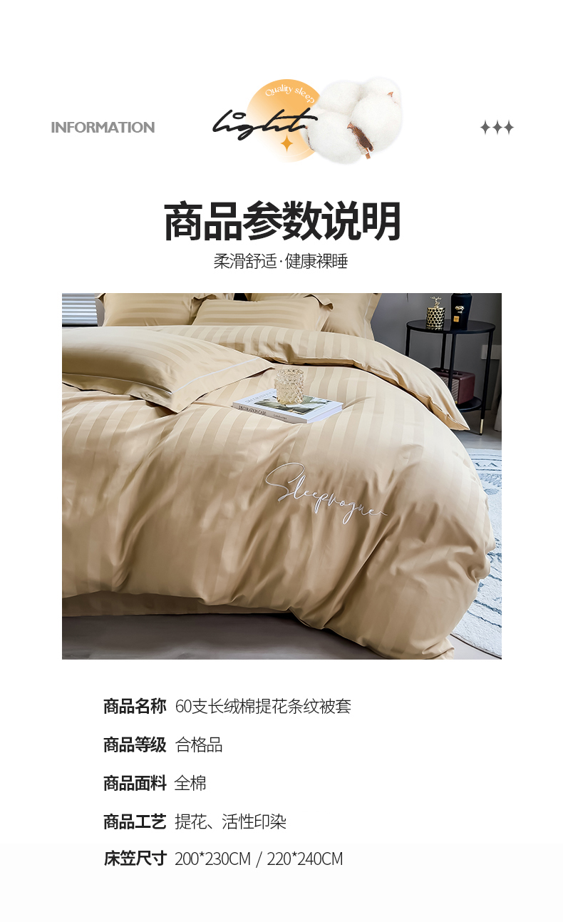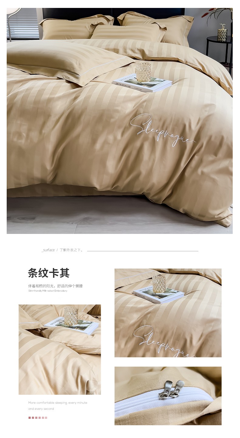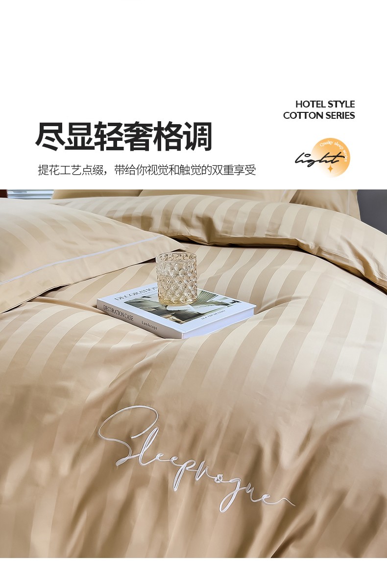 商品名称:慕尚 2025新款60支长绒棉提花条纹系列单品被套 条纹卡其
